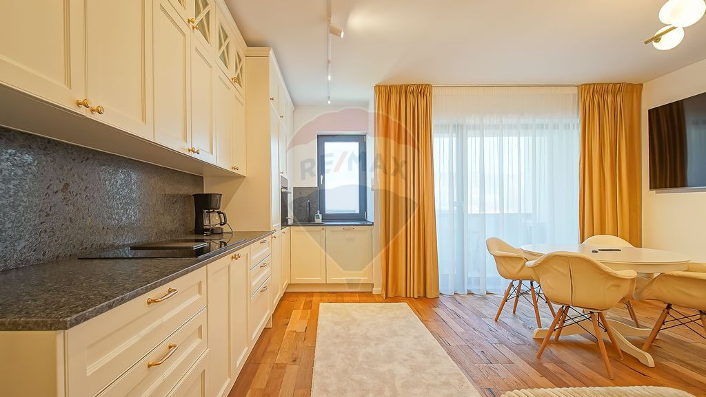 Un apartament care nu este doar un spațiu de locuit, ci o experiență de lifestyle premium. Situat într-o zonă nouă, într-un imobil nou, acest apartament decomandat, ultrafinisat, redefinește standardele de lux urban prin spațiu, lumină și atenție la detalii. Cu o suprafață utilă de 72 mp, proprietatea este completată de un element cu adevărat rar: o terasă impresionantă de 130 mp, un spațiu privat ideal pentru momente de relaxare, seri elegante sau pur și simplu pentru a te bucura de panorama către munte și aerul curat. Livingul are acces direct către balcon, creând o tranziție naturală între interior și exterior și amplificând senzația de spațiu. Compartimentarea este gândită pentru confort absolut: living amplu, luminos, cu ieșire pe balcon două dormitoare, dintre care master bedroom cu baie proprie, un adevărat refugiu privat baie separată, elegantă, dedicată zonei de zi bucătărie separată, complet mobilată și echipată premium Apartamentul este mobilat și utilat integral, cu finisaje atent alese, încălzire în pardoseală și detalii care transmit rafinament și calitate la fiecare pas. Totul este pregătit pentru un stil de viață fără compromisuri. Proprietatea beneficiază de loc de parcare inclus, un detaliu esențial pentru confortul zilnic. Această locuință se adresează unei persoane sau unui cuplu care caută intimitate, eleganță și un standard ridicat de locuire, într-un cadru exclusivist, unde liniștea, priveliștea și calitatea devin parte din rutina zilnică. Nu se accepta animale de companie.
