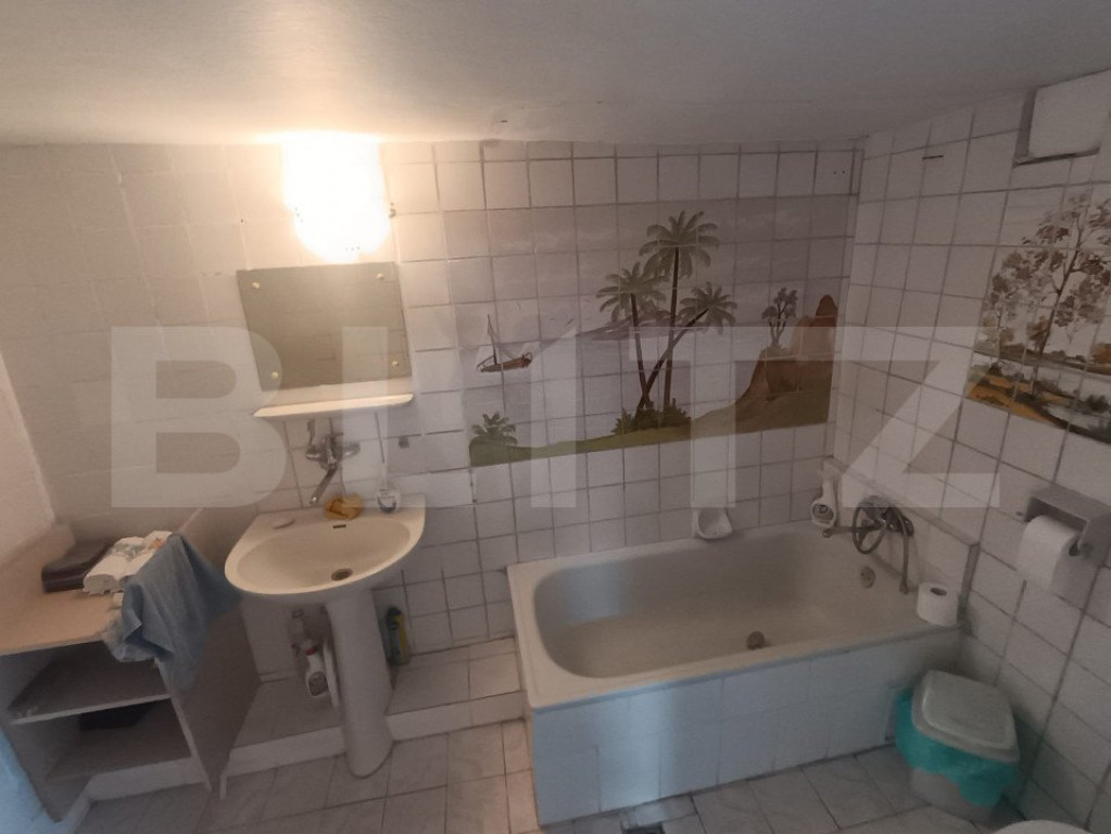 Blitz intermediază vânzarea unei proprietăți compuse din 2 case și un garaj, așezate pe un teren de 9 ari cu două căi de acces, din zona centrală, pretabilă pentru rezidență sau investiție în vederea deschiderii unui spațiu comercial sau de birouri. Imobilul principal este o casă cu regim demisol+parter+pod, a cărei construcție a fost finalizată în anul 1994 și este pe structură de beton + cărămidă, cu suprafața utilă de 134mp (p=70mp, d=64), la care se adaugă podul în care se pot amenaja încă 2 camere. Această casă este locuibilă, având nevoie de doar câteva recondiționări. Încălzirea se realizează prin 2 centrale termice proprii și un șemineu. La parter se găsește living, 1 dormitor, bucătărie utilată, baie, și un hol larg cu acces la pod cu scări, iar demisolul este compus din bucătărie, 2 camere, baie și hol. A doua casă de 110mp a fost construită în anul 1900 pe structură de beton și lemn, are nevoie de lucrări de renovare la parer, demisolul fiind parțial renovat, însă este funcțională și este compusă din 4 încăperi neamenajate + baie. De asemenea pe proprietate se mai află și un garaj de 23mp (19mp util) cu acces direct în strada asfaltată. Pentru orice fel de informații aferente proprietății sau pentru programarea unei vizionări contactează-ne! Cod ofertă / ID BLITZ: P102058 Id intern: P102058
