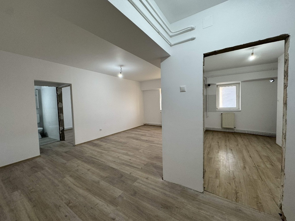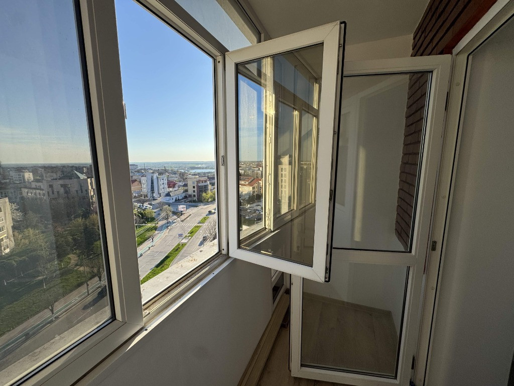Orientarea apartamentului in intregime spre sud ofera o panorama foarte frumoasa asupra unei mari parti a orasului, inclusiv partea cu albia raului Olt. Apartamentul este renovat in 2024 pana la stadiul in care toti peretii sunt cu finisaje totale, inclusiv lavabil, toate instalatiile electrice si sanitare sunt schimbate, tamplaria exterioara este cu geam termopan, inclusiv la balcon, pardoselile sunt realizate in intregime (parchet si gresie) si este realizata instalatia de incalzire, inclusiv caloriferele, fara tocaria interioara (usi) si fara centrala termica.