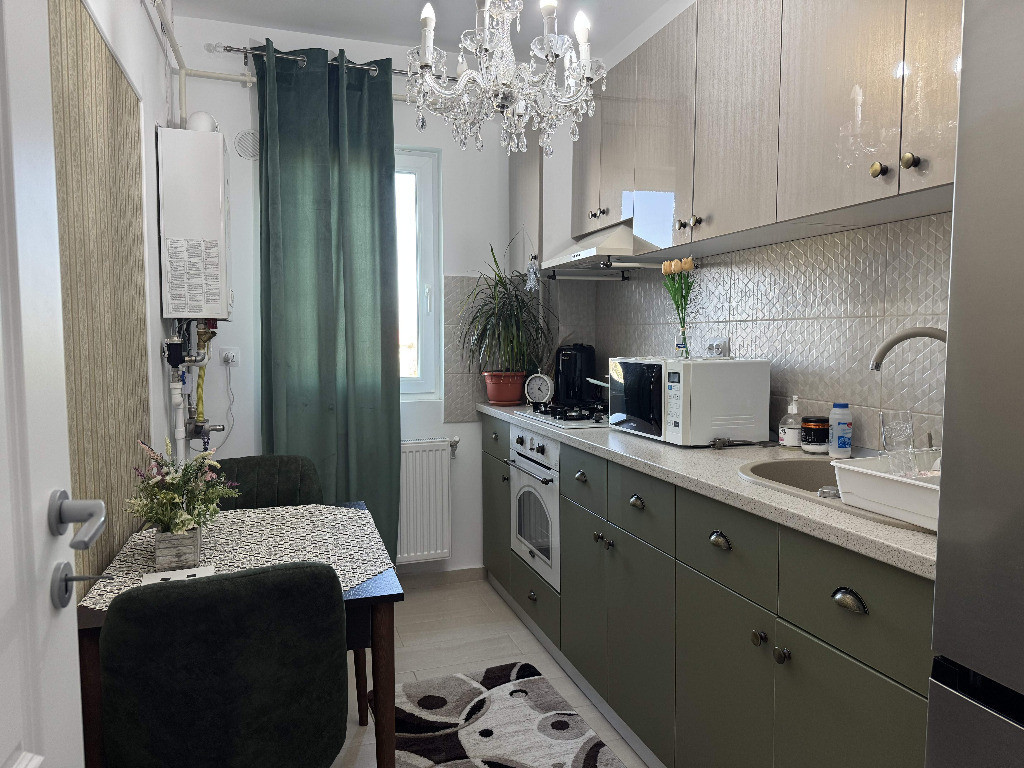 Apartamentul este situat la etajul 2 intr-un bloc nou construit in anul 2022, pe str. Recea, cu regim de inaltime P+5, prevazut cu lift modern de utima generatie, cu un proiect modern si cu urmatoarele caracteristici: Structura este din beton armat monolit, compartimentari cu caramida porotherm si izolatie pe exterior cu polistiren Austrotherm. Tamplaria exterioara este Salamander cu geam tripan, usa exterioara metalica antiefractie, usi interioare marca Bella Casa, toate obiectele sanitare sunt marca Cersanit Polonia, gresia si faianta sunt de provenienta Spania, iar centrala termica pe gaz este marca Beretta. Toate materialele folosite sunt de calitate superioara, atat la finisajele exterioare si interioare, cat si la cele de pe casa scarii si holuri. Suprafata utila a apartamentului este de 40 mp. la care se adauga suprafata balconului de cca 6 mp. si este decomandat total. In pretul apartamentului este inclusa si valoarea unui loc de parcare individual, situat in fata blocului, in suprafata de 12 mp. si se vinde cu intreg mobilierul si electrocasnicele mari existente, car au un grad de uzura foarte scazut.