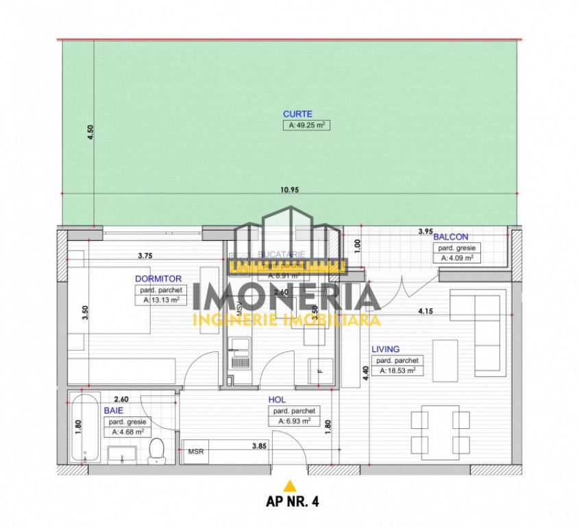 Cauți un apartament cu 2 camere care să aibă și curte proprie (numai bună pentru cafeaua de dimineață în aer liber), într-o zonă liniștită din Titan – Trapezului, cu acces rapid către metrou? A, da… și Comision 0% pentru cumpărător .????? Apartamentul nr. 4, situat pe Aleea Tornadei 12–16, poate fi solutia cautorilor tale dacă vrei un 2 camere decomandat, într-un bloc mic (P+2E+3Er), cu puțini vecini și o compartimentare care chiar te ajută în viața de zi cu zi. Imobilul este finalizat în 2023, iar apartamentul vine cu un avantaj rar pentru un 2 camere în zonă: curte proprie de 49 mp. Accesul către curte se face direct din living, deci poți amenaja ușor un colț de cafea dimineața sau o zonă generoasa de relaxare în aer liber. Un alt plus practic: încăperile sunt spațioase și aproape pătrate, ușor de mobilat, iar bucătăria este închisă și are lățimea de 2,6 m, oferind spațiu suficient pentru mobilier și blatul de lucru, fără să te simți înghesuit. Opțional, există posibilitatea de achiziție separată a unui loc de parcare suprateran. Amplasarea asigura acces facil, in mare parte practicabil pe jos ( in mare parte) catre: - metrou 1 Decembrie 1918: 1 km - STB linii 619, 627, N111, 19, 27, 40: 800 m - Parc sportiv Lunca Cetatii: 450 m - magazine rapide si supermarket-uri ( Fro, Mega Image, Lidl): de la 130 m - hypermarket-uri Kaufland, Auchan: de la 1.7 km - Piata Trapezului: 1 km - gradinite, scoli, licee: de la 700 m DOTARI SI FINISAJE: Pozele din galeria foto sunt realizate intr-un apartament identic, din acelasi imobil pentru a putea vizualiza mai bine posibilitatile de amenajare/mobilare. Apartamentul disponibil pentru vanzare este ocupat de diverse materiale, se afla in stadiul "la gri", dar poate fi vizionat. Pretul include predarea finisata ( placari ceramice, parchet laminat, obiecte sanitare, usi interioare, prize si intrerupatoare) in baza unui buget, ceea ce ofera avantajul personalizarii dupa bunul plac. Apartamentul dispune de centrala termica in condensatie 24 kw Ariston, iar incalzirea se realizeaza prin pardoseala. Contorizarile sunt individuale pentru toate utilitatile. Contoarele sunt amplasate pe casa scarii. NOTE: Comision 0% Cumparator Pretului nu i se aplica TVA Posibilitate achizitie parcare supraterana Apartamentul disponibil pentru vanzare, se afla in stadiul "la gri".Pretul include predarea finisata in baza unui buget si se preda nemobilat. Pozele din galeria foto sunt realizate intr-un apartament identic, din acelasi imobil Achizitia se poate face atat prin surse proprii, cat si prin credit ipotecar. Id intern: P153226