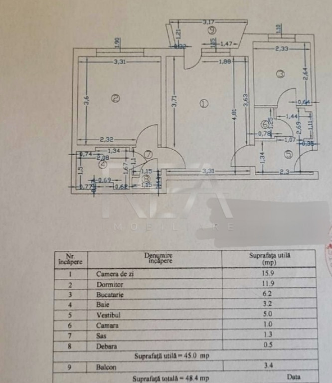 Suprafața utilă 45 m²