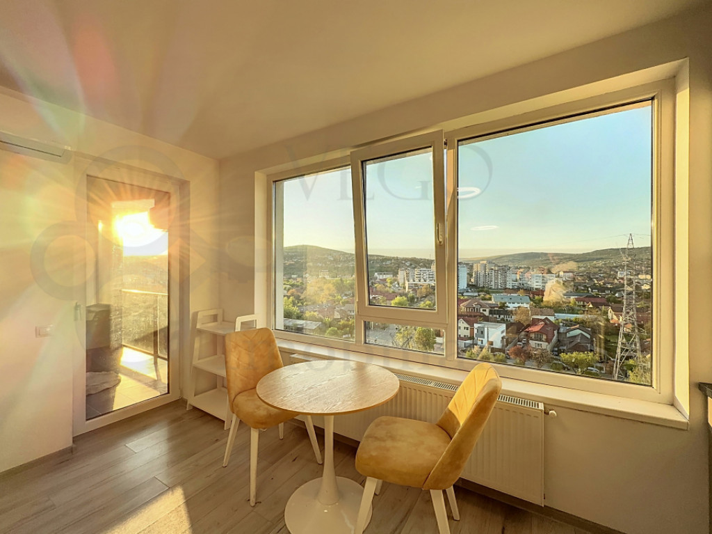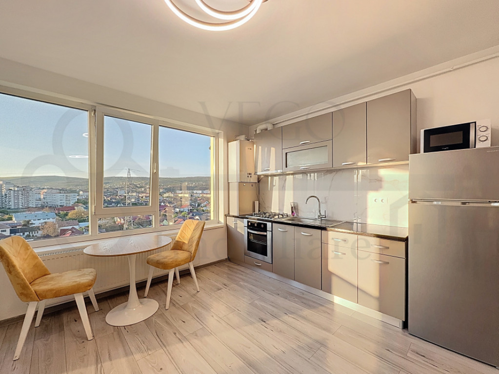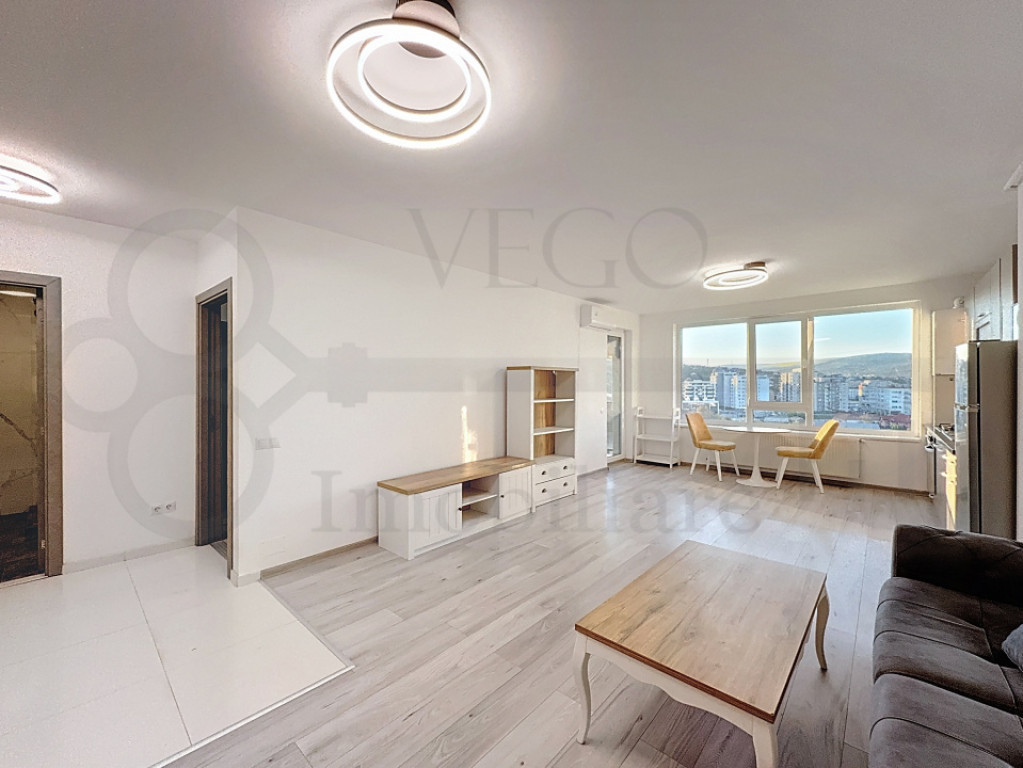 DISPONIBIL ÎNCEPÂND CU 1 IULIE 2026 VEGO IMOBILIARE vă prezintă spre închiriere și vă stă la dispoziție cu acest apartament de două camere, care iese în evidență prin priveliștea sa spectaculoasă și localizarea ideală, chiar pe malul Someșului, în zona Piața 1 Mai, lângă Podul Porțelanului. Situat la etajul 8 al unui bloc modern, finalizat în anul 2019, apartamentul este compus dintr-un living cu bucătărie open space, un dormitor, o baie și un balcon. Datorită poziționării înalte, apartamentul beneficiază de lumină naturală din plin și oferă o vedere deosebită asupra orașului, cu apusuri care pot fi admirate direct din confortul propriei locuințe. Încălzirea se realizează cu centrală termică individuală, iar pentru confort suplimentar în sezonul cald, apartamentul este dotat și cu aparat de aer condiționat. În prețul afișat este inclus și un loc de parcare subteran. Locuința se închiriază complet mobilată și utilată, conform fotografiilor de prezentare. Preț: 600 euro/lună. Pentru orice alte informații, sau pentru stabilirea unei vizionări, nu ezitați să ne contactați. Un reprezentant VEGO IMOBILIARE vă stă la dispoziție cu drag! ID: R895 Id intern: P167773