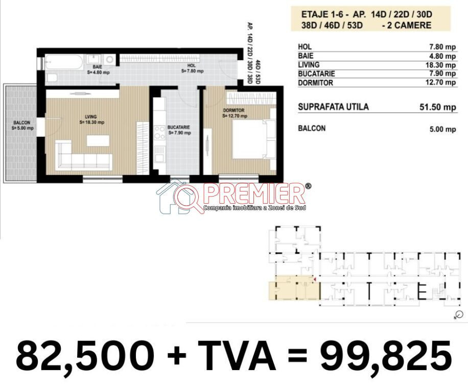 Premier Imobiliare vă propune spre vânzare un apartament de 2 camere, situat la etajul 1 din 6, cu suprafață utilă de 57,70 mp – ideal pentru cupluri sau familii la început de drum. Un avantaj major: achiziție cu doar 5% avans la antecontract, restul la predare – termen finalizare Martie 2026. Compartimentarea este practică și confortabilă: hol generos dormitor confortabil living luminos bucătărie separată baie echipată Se predă complet finisat „la cheie”, cu toate utilitățile racordate (Enel, Engie, Apa Nova) și dispune de izolație termică și fonică superioară, pentru confort maxim și costuri reduse de întreținere. Locuri de parcare disponibile: exterior – 8.000 € + TVA subteran – 10.000 € + TVA Poziționarea oferă acces rapid la mijloace de transport (STB 241), Parcul Tudor Arghezi (10 minute), Kaufland și Lidl (7 minute), precum și la școli, grădinițe, farmacii și spitale. Oportunitate excelentă pentru locuit sau investiție, cu asistență completă pentru credit bancar. Pentru detalii și vizionări: Alexandru Sorin – 0731 510 845 Pozele sunt randări cu titlu de prezentare, pentru a ilustra un posibil mod de amenajare al apartamentului. Detalii zona: - Statie STB - 10 minute pietonale Parcul Tudor Arghezi - 7 minute pietonale Kaufland - Lidl - 10 minute pietonale Grand Arena Mall Serviciul nou oferit de PREMIER Imobiliare! Solicita acum VIZIONARE ONLINE pentru aceasta proprietate! COMISION 0% Această proprietate se poate achiziționa prin orice tip de credit bancar. Departamentul nostru financiar Premier Credit Hub vă stă la dispoziție GRATUIT (comision 0%) pentru: - identificarea celei mai bune soluții de finanțare; - întocmirea dosarului bancar complet; - obținerea rapidă a creditului necesar achiziției. Beneficiați de un serviciu ALL IN ONE, cu acces direct la ofertele tuturor băncilor comerciale din România. Se acceptă inclusiv venituri din străinătate, astfel încât fiecare client să poată cumpăra în cele mai avantajoase condiții. Solicitați acum o simulare de credit direct din anunț sau cereți detalii consultantului Premier Imobiliare!