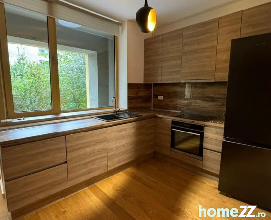 Apartamentul este situat la parter, cu orientare catre curtea interioara, departe de zgomotele stradale. Cu o suprafata totala de 60 mp, locuinta este compusa dintr-un living cu bucatarie, un dormitor, 2 bai, beneficiind de gradina proprie cu o suprafața de 30 mp.