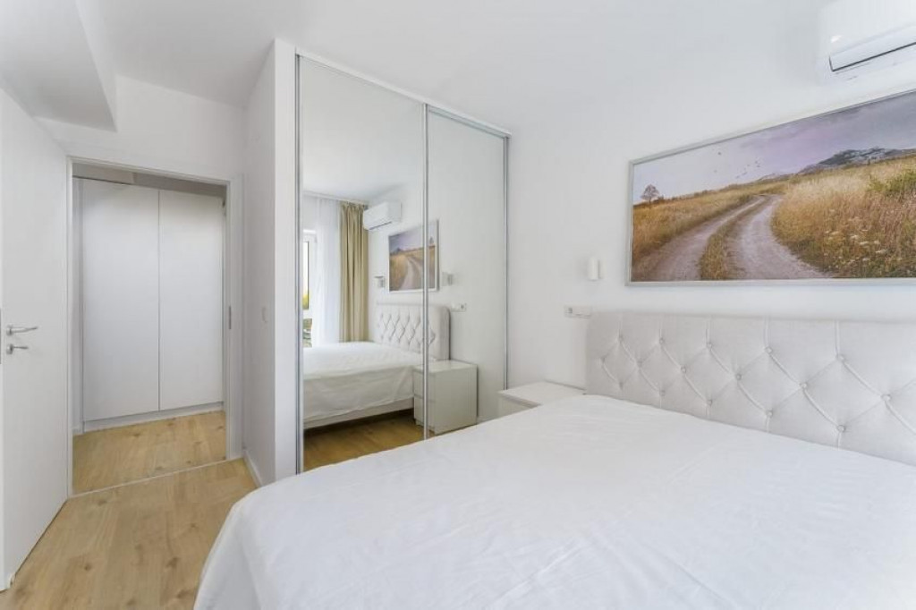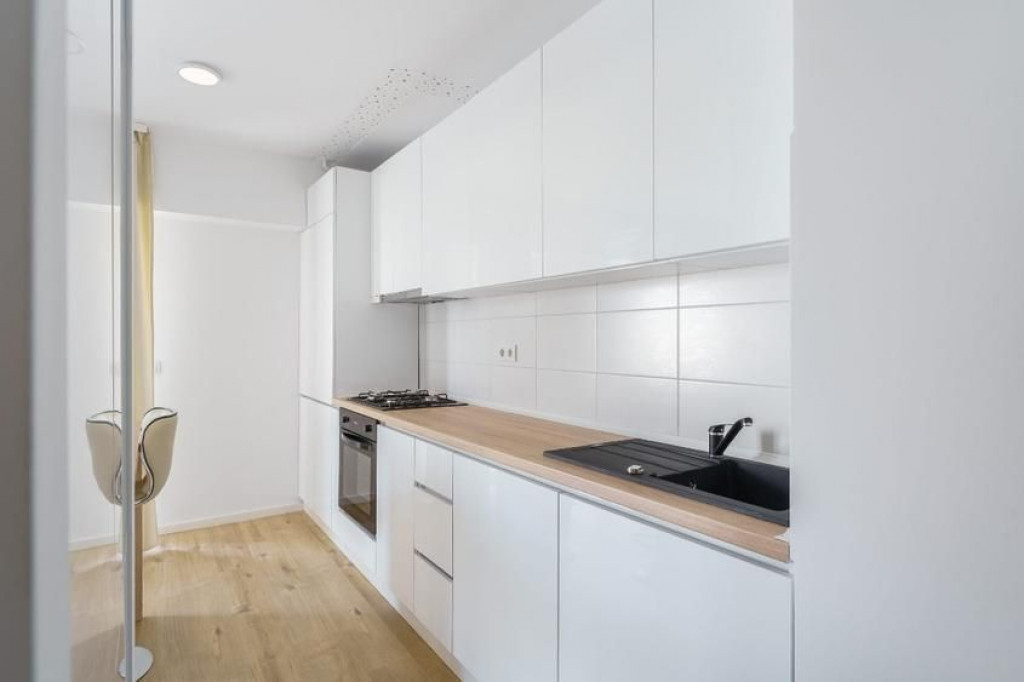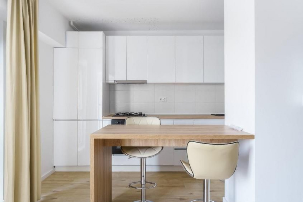Apartamentul este modern, totul nou la un nivel premium. Mobila este facuta pe comanda, electrocasnicele (cuptor cu microunde, masina de spalat rufe cu uscator, masina de spalat vase, combina frigorifica incorporata) sunt de calitate si multiplele spatii de depozitare se integreaza perfect din punct de vedere estetic in designul general.