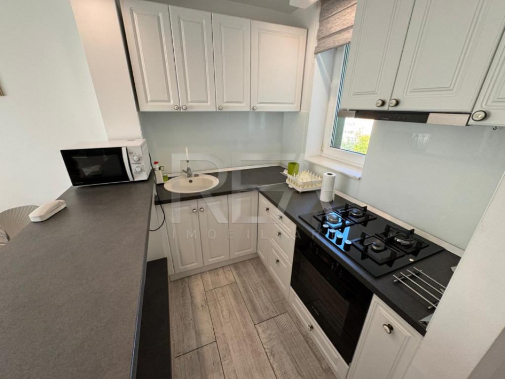 R.E.A. Imobiliare Apartament cu 2 camere decomandat, complet mobilat și utilat, situat la etajul 9/10 într-un bloc solid, finalizat în 1974 și reabilitat termic. Suprafață totală: 43 mp, din care 41,5 mp utili + balcon închis de 1,5 mp. Configurație: dormitor, living cu bucătărie open-space, baie și balcon. Sistem de încălzire: racordat la centrala de termoficare. Apartamentul impresionează printr-un design modern și funcțional, bucatarie dispune de sticla securizata, cu mobilier realizat pe comandă și multiple spații de depozitare. Este complet mobilat și utilat, dotat cu: -Electrocasnice premium BOSCH – frigider, plită, cuptor, hotă; -Sistem de climatizare DAIKIN; -Iluminat cu spoturi LED încastrate în tot apartamentul; -Instalații electrice și sanitare schimbate integral la renovare. Beneficiază de o boxă comună, perfectă pentru depozitare suplimentară, și loc de parcare ADP valabil până în martie 2026. Localizare excelentă: La doar 1 minut de mers pe jos până la metrou Raul Doamnei și 2 minute până la stațiile STB. În apropiere: școli, grădinițe, magazine, bănci și parcuri, fiind o zonă verde și liniștită. Un apartament modern, luminos și eficient compartimentat, perfect pentru o persoană sau un cuplu, gata de mutare. Pentru detalii și vizionări, vă rugăm să ne contactați, menționând codul de identificare P8768. Id intern: P8768