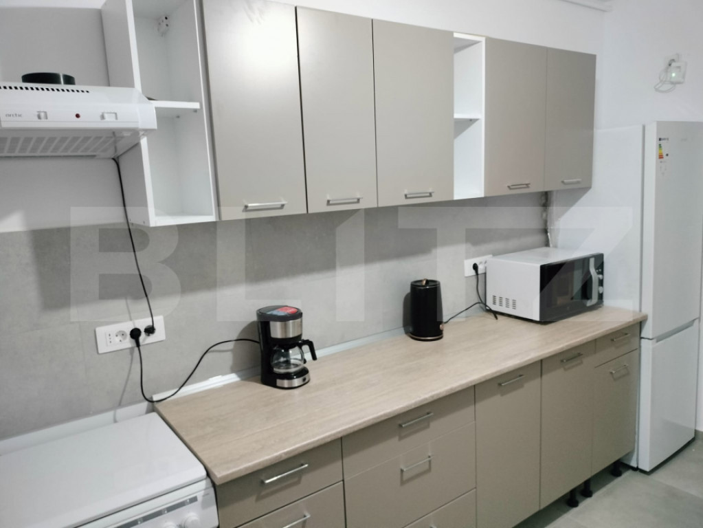 BLITZ propune spre închiriere apartament modern, 2 camere, finisaje noi, mobilat complet Vă prezentăm un apartament modern, luminos și foarte bine compartimentat, situat într-un imobil nou, ideal pentru persoane care își doresc confort și funcționalitate. Locuința este compusă din: ✔️ Living spațios cu canapea extensibilă ✔️ Dormitor matrimonial ✔️ Bucătărie separată, complet mobilată și utilată ✔️ Baie modernă cu cadă ✔️ Hol generos cu spații de depozitare ✔️ Balcon Apartamentul este complet mobilat și utilat: – Aer condiționat – Mașină de spălat rufe – Frigider – Cuptor cu microunde – Espressor cafea – TV – Spații multiple de depozitare ???? Loc de parcare inclus – pentru cine nu are nevoie de parcare, prețul scade la 510 euro. ???? Comision agenție: 50% + TVA din valoarea primei luni de chirie. TVA-ul se aplică la comision, nu la chirie. Pentru mai multe detalii sau programarea unei vizionări, vă stăm cu drag la dispoziție. Cod ofertă / ID BLITZ: P164258 Id intern: P164258