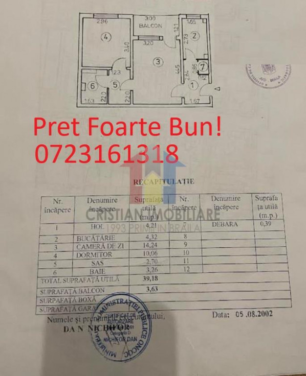 2 camere confort 2 sporit, Disponibil Imediat, Calea Galati - Kogalniceanu * Termopan exterior * Izolat termic exterior * Balcon inchis in termopan * Faianta si gresie cumparate dar inca nu au fost puse * Aer conditionat * Centrala termica nu i montata *Instalatie electrica schimbata * Acte la zi *Predare imediata Cristian Imobiliare - din 1993 Primii in Braila CRS
