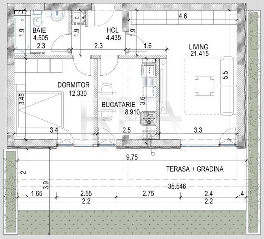R.E.A. Imobiliare Apartament 2 camere, decomandat, orientat SUD, la etajul Parter /5, într-un complex construit în anul 2021, in zona PIPERA. - Suprafata totala 128.14 mp: 51.59 mp utili+ 35.55 mp gradina+ 41 mp mp gradina. - Configuratie: dormitor, living, bucatarie inchisa, hol, baie si 2 loturi de gradina. - Incalzire prin calorifere, centrala proprie. - Pret loc de parcare acoperit 15.000 EUR + TVA. La un minut de mers cu masina de Scoala Americana sau Scoala Internationala Olga Gudynn. Pentru detalii si vizionari, vă rugăm să ne contactați, specificand codul de identificare P2888. Id intern: P2888