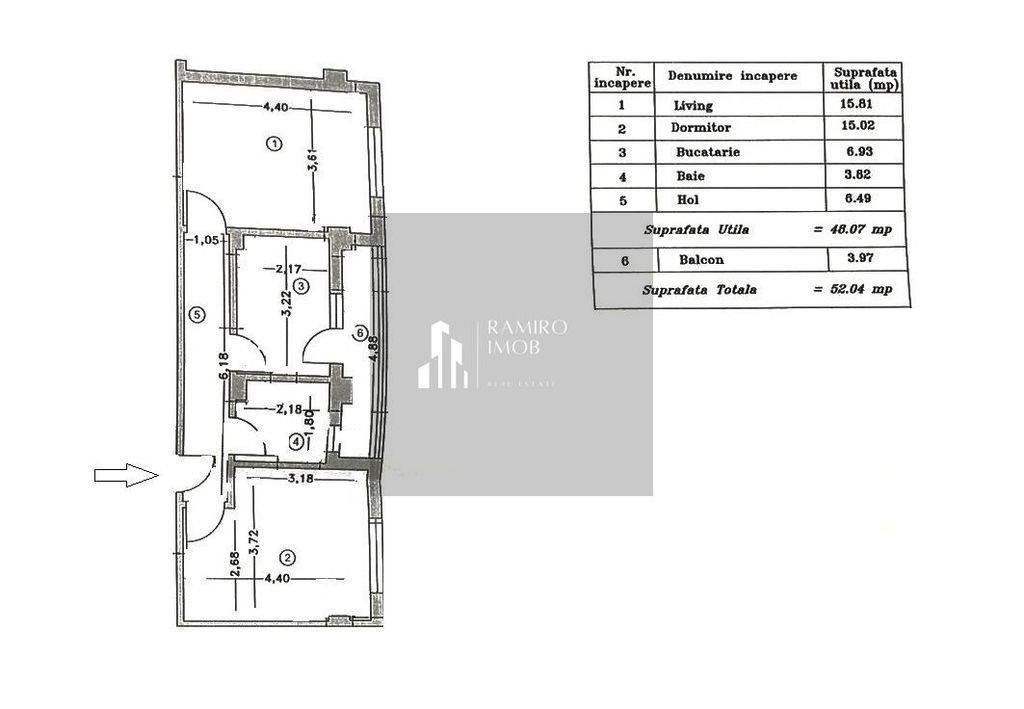 Suprafața utilă 52 m²