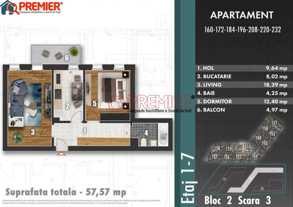 Camere Decomandat Metalurgiei | Parc Tudor Arghezi | Comision 0% Detalii compartimentare spatiu: 2 Camere Decomandat – Z Park Residence – Bd. Metalurgiei – Parc Tudor Arghezi Prețuri disponibile: 87.500 Euro + TVA 21% – Avans 50% 95.000 Euro + TVA 21% – Avans 15% Premier Imobiliare vă oferă spre vânzare un apartament de 2 camere decomandat, cu o suprafață utilă de 57,57 mp, situat în cadrul ansamblului Z Park Residence, bloc exclusivist cu regim de înălțime P+8. Designul minimalist și ferestrele largi creează spații luminoase și confortabile, oferind o conexiune naturală între interior și exterior. Compartimentare: Hol 9,64 mp Living 18,29 mp Bucătărie 8,02 mp Dormitor 12,40 mp Baie 4,25 mp Balcon 4,97 mp Blocul este amplasat la 1 minut de Bulevardul Metalurgiei, la 2 minute de Parcul Tudor Arghezi și la 3 minute de Grand Arena Mall. În imediata apropiere regăsim școli, grădinițe, piață, magazine, Lidl, Kaufland, spitale, farmacii și multiple spații de agrement. Locuința este dotată cu centrală termică proprie în condensare de 24 KW. Construcția este realizată pe cadre din beton armat B400 și B500, iar compartimentarea este realizată cu cărămidă Porotherm, oferind siguranță și confort sporit. Tencuiala și șapa sunt mecanizate, iar izolația este de foarte bună calitate, atât termică, cât și fonică. Apartamentele se predau la cheie, cu toate branșamentele Enel, Engie și Apanova. Se poate achiziționa prin plată integrală sau prin orice tip de credit. Oferim asistență personalizată pentru întocmirea dosarului bancar. Comision 0%. Poze cu titlu de prezentare. Viitorul proprietar are posibilitatea de a alege finisajele premium din paletarul dezvoltatorului. Pentru mai multe detalii și programarea unei vizionări: Daria – 0725 957 933 Serviciul nou oferit de PREMIER Imobiliare! Solicita acum VIZIONARE ONLINE pentru aceasta proprietate! COMISION 0% Această proprietate se poate achiziționa prin orice tip de credit bancar. Departamentul nostru financiar Premier Credit Hub vă stă la dispoziție GRATUIT (comision 0%) pentru: - identificarea celei mai bune soluții de finanțare; - întocmirea dosarului bancar complet; - obținerea rapidă a creditului necesar achiziției. Beneficiați de un serviciu ALL IN ONE, cu acces direct la ofertele tuturor băncilor comerciale din România. Se acceptă inclusiv venituri din străinătate, astfel încât fiecare client să poată cumpăra în cele mai avantajoase condiții. Solicitați acum o simulare de credit direct din anunț sau cereți detalii consultantului Premier Imobiliare!