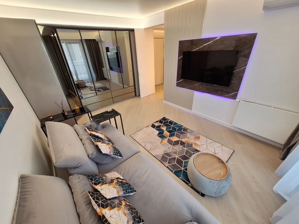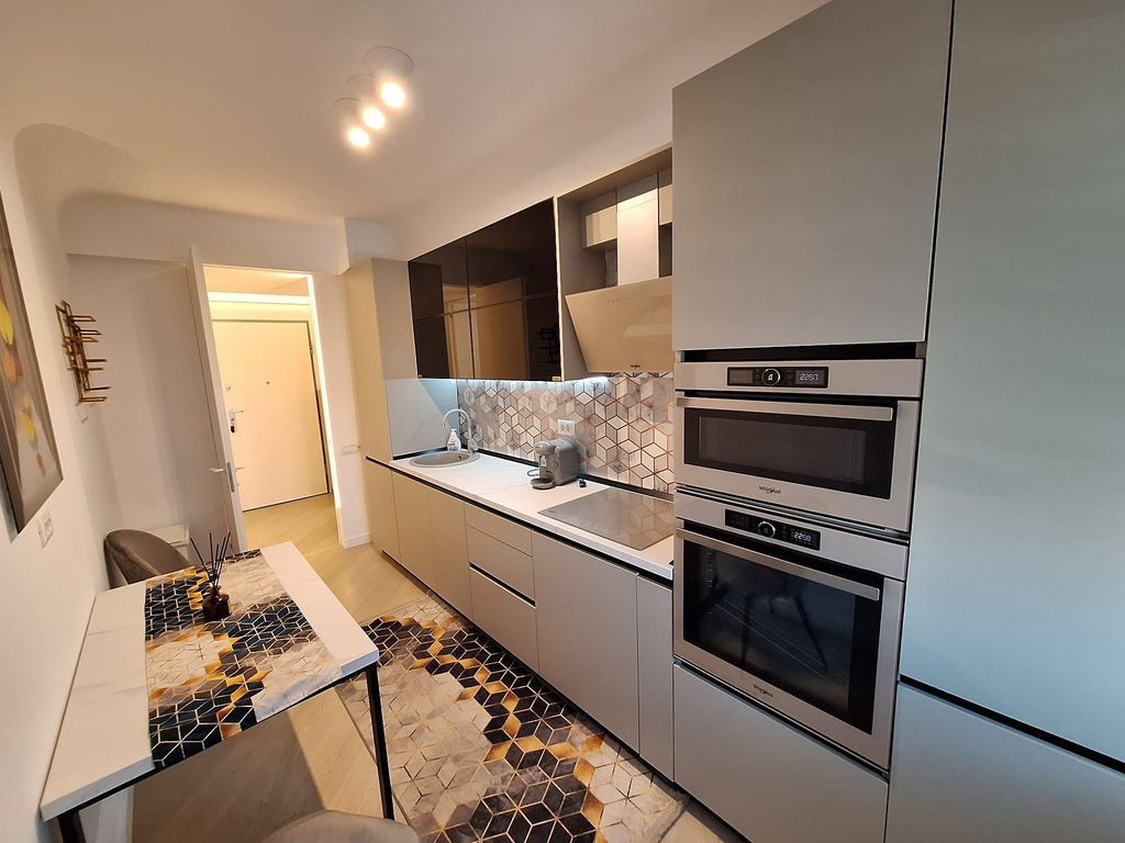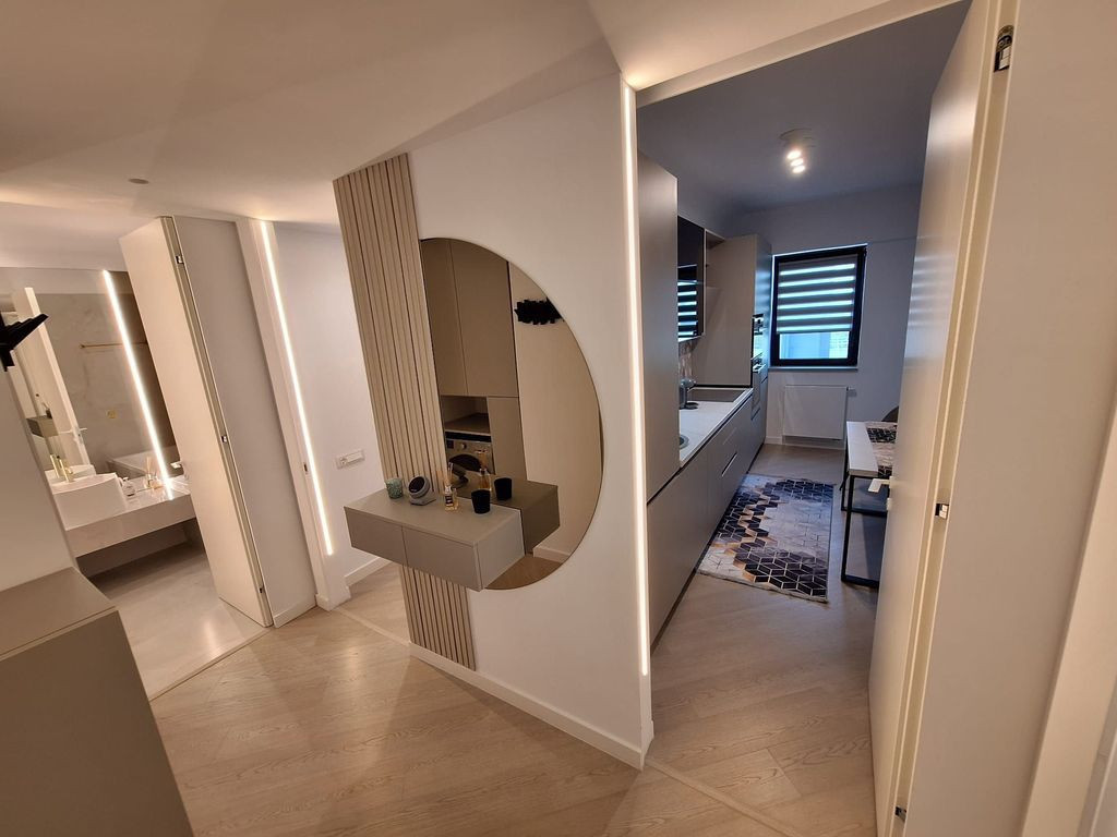 Persoana fizica, la pret NU se adauga TVA. Cel mai frumos apartament de 2 camere decomandat (cu bucatarie inchisa)in complexul rezidential Cortina North. Apartamentul este mobilat si utilat complet, cu electronice si electrocasnice de ultima generatie, de cea mai buna calitate. Bucataria a fost realizata pe comanda, cu electrocasnice incorporabile marca Whirlpool, si frigider incastrat de la Samsung. Apartamentul beneficiaza de 2 aparate de aer conditionat de la LG, unul in living si unul in dormitor. Din living avem acces catre o terasa de 10 mp, foarte lata, acoperita complet de balconul de deasupra, ce ofera o vedere libera si intimitate. In apartament s-au investit foarte multi bani, timp si munca, fiind pus la punct din toate punctele de vedere, rezultand astfel o locuinta impecabila. Ansamblul rezidential din care face parte apartamentul, este situat intr-o locatie premium, in zona de Nord si ofera acces la spatii verzi de peste 10 000 mp, la spatiu wellness dar si la un bazin de inot semi-olimpic. Imobilul beneficiaza de 2 lifturi moderne OTIS ce merg pana in subsol.