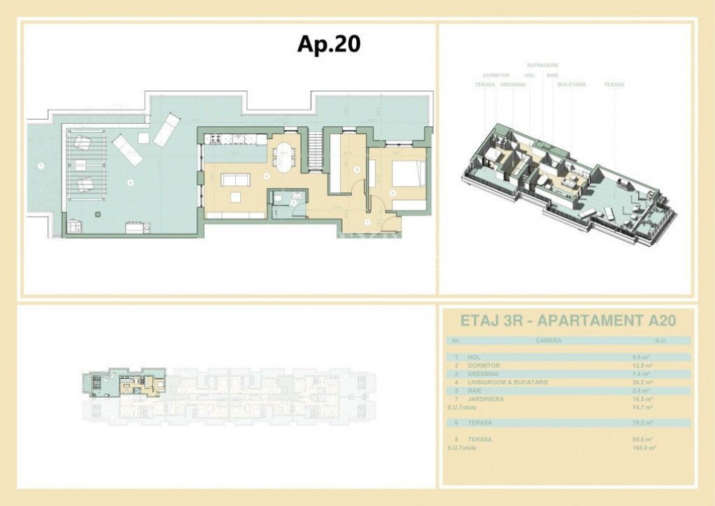 Suprafata utila:74.7 mp utili +164 mp balcon, 238.7 mp utili