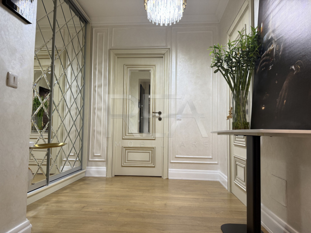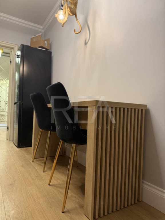 Apartamentul este amenajat cu designer de interior, fiind mobilat și utilat complet, gata de mutare. Finisajele premium și atenția la detalii creează o atmosferă elegantă și funcțională.