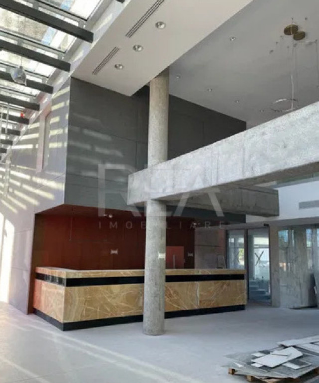 Clădire nouă, cu fațadă integral vitrată și design arhitectural modern