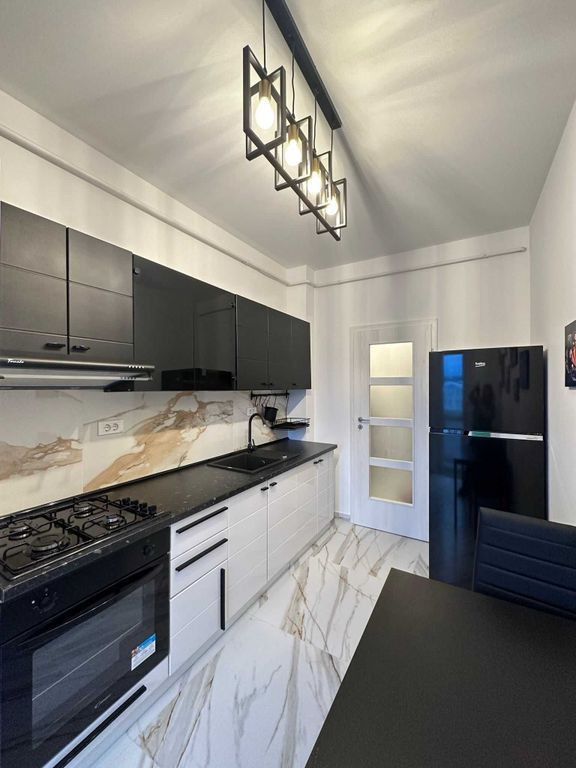 Bucatarie: mobilier, plita, hota, cuptor, combina frigorifica, centrala proprie.