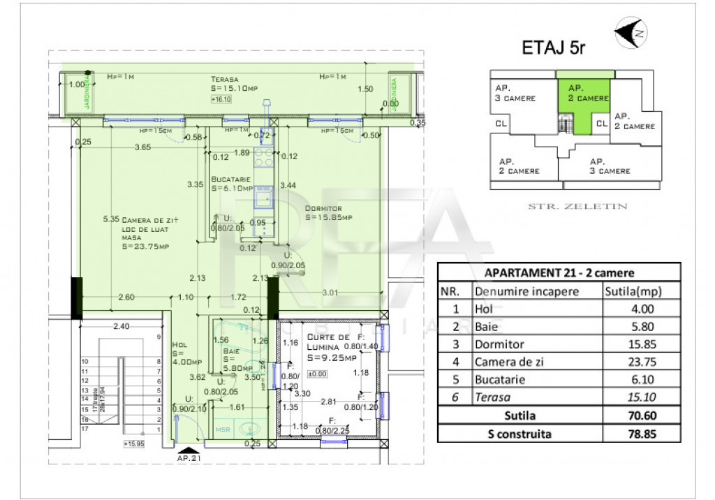 R.E.A. Imobiliare Apartament premium 2 camere | Nordul Capitalei, Sector 1, la câteva minute de Cartierul Francez, Parcul Herăstrău și Podul Băneasa, situat intr-un imobil boutique S+P+4 etaje + etaj retras prinde contur și va fi pregătit pentru locuire din 15 iulie 2025. Proiectul propune apartamente spațioase, decomandate, cu 2, 3 și 4 camere, configurate pentru un stil de viață urban rafinat. Avantaje ale amplasării Recreere & natură: Parcul Herăstrău la o plimbare scurtă, acces rapid spre Parcul Bordei și zonele verzi din Băneasa Educație: Școala Gimnazială Herăstrău, British School of Bucharest (Băneasa), grădinițe bilingve și after-school-uri de top Sănătate: Spitalul Regina Maria Băneasa, Ponderas Academic Hospital, Medicover Aviatorilor, clinici private și centre medicale de proximitate Business & shopping: Polul de birouri Pipera-Aviatorilor, Promenada Mall, Băneasa Shopping City, piețe agroalimentare și magazine gourmet Gastronomie & lifestyle: Restaurante în Cartierul Francez, cafenele de specialitate pe Bd. Aerogării, terase pe malul lacului Suprafață totală: 70,6 mp , Suprafață utilă 55,5 mp, terasă 15,10 mp Configurație: living, dormitor, baie, bucătărie, hol, terasă Toate unitățile sunt livrate la stadiu de finisaj la alegerea viitorului proprietar, cu pachet personalizat prin parteneriatul Delta Studio (gresie, faianță, parchet, uși interioare, obiecte sanitare, plintă). Performanță constructivă Structură: cadre din beton armat B400, zidărie exterioară & interioară Porotherm Austria, fier beton de calitate superioară Anvelopă: fațadă decorativă CAPAROL Dalmatina Ignifug, balcoane cu sticlă securizată dublă Tâmplărie: profil PVC 7 camere, geam tripan cu protecție UV și izolare fonică sporită Înălțime liberă: 2,85 m în camere, senzație veritabilă de spațiu Dotări interioare premium Încălzire în pardoseală TECCE (Germany), centrală termică proprie pentru fiecare apartament Instalație electrică GEWISS; sistem de canalizare antifonat Uși de intrare metalice Safe, închidere în 3 puncte (valoare 4.500 lei) Glafuri și pardoseală pe holuri din granit & marmură Lift Schindler (6 persoane) deja funcțional Contorizare individuală 100 % pentru apă, gaz și electricitate Facilități suplimentare Parcări subterane disponibile la 20.000 EUR + TVA, acces securizat Rute rapide către DN 1, Aeroportul Otopeni și viitoarea linie de metrou M6 Se acceptă orice modalitate de plată Pentru detalii si vizionari, contactati-ne specificand codul de identificare P7775. Id intern: P7775