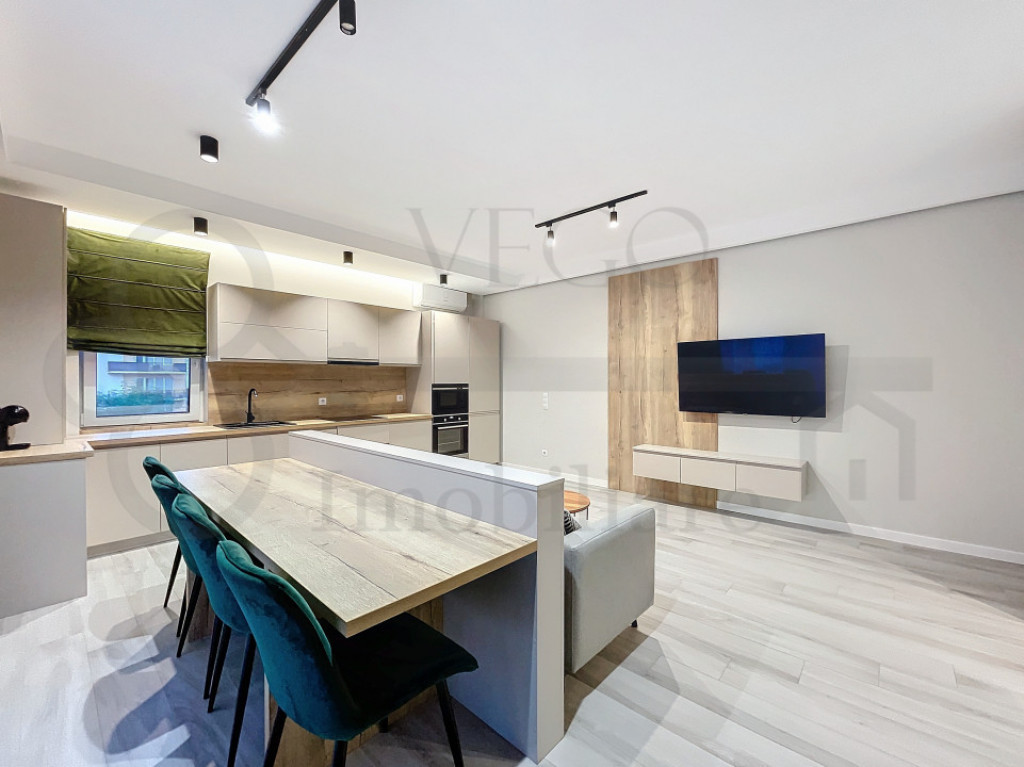 VEGO IMOBILIARE vă prezintă spre închiriere și vă stă la dispoziție cu acest apartament de două camere, poziționat la etajul 2 al unui imobil nou, cu doar 6 apartamente, recent finalizat, situat în cartierul Bună Ziua, pe strada Mircea Zaciu, în proximitatea ansamblului Bonjour Residence, oferind acces extrem de facil asupra multor puncte de interes, situat la o distanță de câteva minute de mijloacele de transport în comun, de asemenea, în apropiere se regăsesc magazine ( Mega Image, LIDL, Home Garden ), farmacii, bănci, Panemar, Moldovan, sală de fitness 18Gym și multe alte obiective importante. Locuința se desfășoară pe o suprafață utilă de 50 mp + o terasă de 6 mp, finisajele sunt moderne, de înaltă calitate, se închiriază complet mobilată și utilată, inclusiv cu mașină de spălat vase, în rândul dotărilor menționăm pardoseala cu parchet laminat, ferestre termoizolante cu tâmplărie PVC, uși interioare din lemn și ușă metalică antiefracție la intrare, iar confortul termic este asigurat pe tot parcursul anului de centrala termică individuală cu sistem de încălzire prin pardoseală și aparatul de aer condiționat. Compartimentarea este semidecomandată, astfel: - 1 cameră de zi + 1 bucătărie cu zonă de servit masa open-space, 1 dormitor, 1 baie cu fereastră, 1 terasă, 1 hol. De asemenea, în cuantumul chiriei lunare, apartamentul dispune de un loc de parcare individual, situat în garajul subteran al imobilului. Preț: 680 euro/lună. Pentru orice alte informații, sau pentru stabilirea unei vizionări, nu ezitați să ne contactați, iar un reprezentant al agenției, vă stă la dispoziție cu toate detaliile necesare. ID: 718 Id intern: P135981