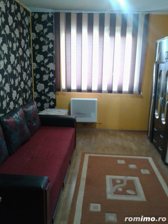 Se ofera spre inchiriere garsoniera compusa din camera , bucatarie , baie si hol situata in zona Modern . Dispune de toate electrocasnicele necesare . In imediata vecinatate se gasesc statie de tramvai , market , farmacie . Suprafata 26 mp , etaj 1