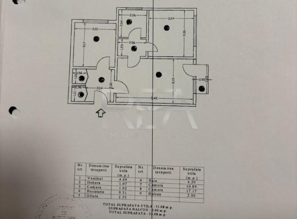 Suprafata totala utila este de 53.08 mp incluzand si balconul de 2 mp.