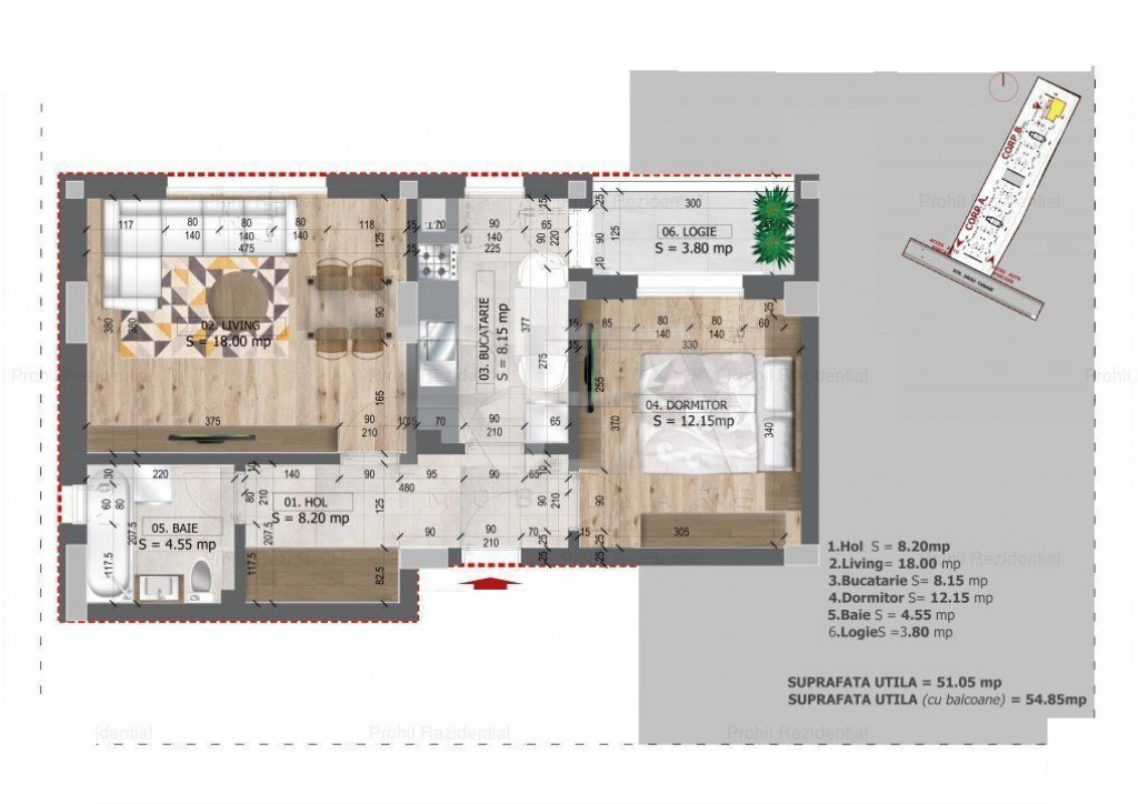 Suprafața utilă 51 m²