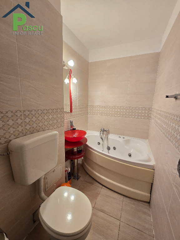 Apartamentul are bucataria mobilata la comanda si utilata complet (aragaz, cuptor, hota, combina frigorifica, cuptor cu microunde), baia este dotata cu cada pe semi-rotund cu hidromasaj, masina de spalat rufe automata, 2 televizoare LED Smart, aparat de aer conditionat, saltea noua in dormitor.