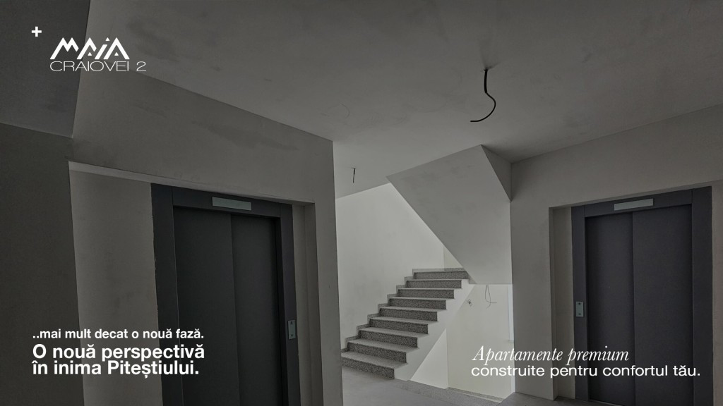 Preturile afisate sunt promotionale, valabile pana la data de 14 Decembrie 2025 pentru un avans de 50% si diferenta in transe lunare pana la predarea apartamentului. Acestea sunt fara TVA si cu predare la stadiul semifinisat | Costul finisajelor este de 150 EUR fara TVA pe mp construit. Apartamente Noi în Ansamblul Maia Craiovei – Corp B Pitești, Calea Craiovei 91 – Locație ultracentrală, aproape de tot ce contează Descoperă un stil de viață urban modern, într-un ansamblu rezidențial de calitate superioară, aflat în inima Piteștiului, cu acces facil către Autostrada A1 și punctele cheie ale orașului. Calitate în fiecare detaliu Finisaje premium & dotări moderne: - Centrală termică în condensație – Buderus (sau similar) - Încălzire în pardoseală – REHAU (sau similar) - Cadru WC încastrat – Grohe/TECE (sau similar) - Uși metalice de intrare – PINUM / MEGADOOR (sau similar) - Tâmplărie PVC tripan – Gealan (sau similar) gri exterior, alb interior - Glet, șape, rețele TV/telefonie/internet incluse - Spații comune finisate modern, cu 2 lifturi Schindler per corp Finisaje la alegere: - Parchet laminat EGGER/YILDIZ (sau similar) 8–10 mm ~10 modele - Gresie & faianță import Spania/Italia – 3 colecții - Obiecte sanitare Cersanit/Roca (sau similar) - Uși de interior VELTA DOORS (sau similar) - Prize și întrerupătoare incluse Construcție solidă & izolare excelentă - Zidărie între apartamente: min. 25 cm grosime - Compartimentări finisate cu tencuială + vopsea lavabilă - Tâmplărie tripan low-emission - Fațadă cu polistiren 10 cm, tencuială decorativă (alb & gri închis) - Acoperiș tip terasă necirculabilă, izolat termic și hidro Facilități ale ansamblului - 2 lifturi/segment (acces de la orice nivel) - Spații verzi amenajate - Interfon - Casă scării finisată modern Localizare Premium Situat pe Calea Craiovei 91, Corpul B al ansamblului MAIA te aduce aproape de tot ce ai nevoie: - Transport în comun: stațiile C.A. Rosetti și Negoiu - Bănci: Unicredit, Transilvania, Raiffeisen - Shopping: Piața Craiovei, Lidl, Kaufland, Trivale Shopping Center Educație și Grădinițe în apropiere - Grădinița PP Nr. 19, Kinder World Dream, Kinder Strumff - Școli gimnaziale și colegii de prestigiu (IL Caragiale, Zinca Golescu, Brătianu, Teiuleanu, Armand Călinescu) - Universitatea din Pitești Recreere & Lifestyle - Parcul Trivale, Grădina Zoologică, Expo Parc - Cinema Trivale, Teatrul Davila, Muzeul Județean - Piscina Trivale, Xtreme Fitness Gym Toate la mai puțin de 10 minute de mers! Sănătate & Îngrijire - Spitalul de Pediatrie Pitești - Muntenia Medical Hospital - Tedy Care, Centrul Sanovital Informații importante: - Prețurile NU conțin TVA – acesta se adaugă conform normelor în vigoare - Ansamblul este în construcție – Certificatul energetic nu este încă disponibil Contact vânzări: 0729 292 292 Programează o vizionare sau cere mai multe detalii!