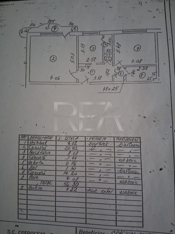 REA Imobiliare Apartament de 2 camere, decomandat, orientat SUD, aflat la 5 din 8, intr-un bloc anvelopat, constructie 1988, în zona 13 septembrie, la doar câțiva pași de Vulcan Value Centre, Parcul Sebastian, Prosper Mall si World Class One Cotroceni Park. - Suprafață totală utila de 56,30 mp. - Balconul de 4,22 - Multiple spatii de depozitare. - Compartimentare: living, dormitor, bucătărie închisă, hol si baie. - Încălzire prin calorifere, termoficare. -Apartamentul necesita renovare Acces rapid la transport public: 2 minute pana la statiile STB, 12 minute pana la metrou Orizont. Pentru detalii și vizionări, contactați-ne specificând codul de identificare P9467. Id intern: P9467