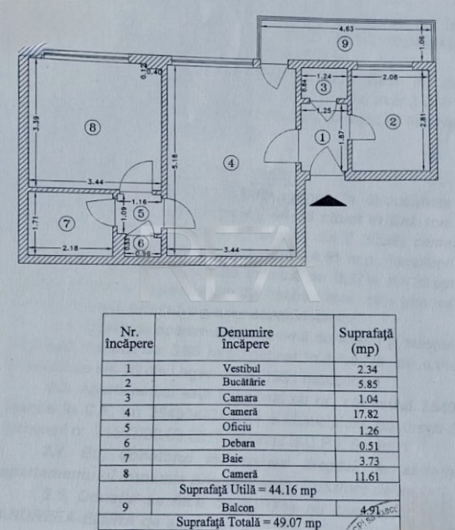 R.E.A. Imobiliare Apartament de 2 camere, renovat, într-o locație deosebită, zona 1 Mai - Domenii, in arpopiere de Parcul Agronomiei, Complexul Cireșarii, Cresa Vrancea, Piata Domenii – toate la distanță pietonală. Ideal atât pentru locuit, cât și pentru investiție, acest apartament semidecomandat se află la etajul 1 din 7 într-un bloc anvelopat și fără risc seismic, construit în 1963. - Suprafață totală 49,07 mp: 44,16 mp utili + 4,91 mp balcon. - Configuratie: dormitor, living, bucătărie spatioasa, hol, debara, baie și un balcon confortabil. - Încălzirea se face prin calorifere, termoficare - Instalațiile electrică și sanitară au fost schimbate. Acces rapid la transportul public: 2 minute pana la statiile STB, 8 minute pana la Metrou 1 Mai. Pentru detalii și vizionări, contactați-ne specificând codul de identificare P9609. Id intern: P9609