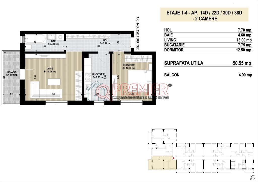 Apartament 2 camere – Sector 4, Berceni – Grand Arena Suprafață utilă: 56,5 mp Compartimentare: Decomandat Etaj: 1/6 Finalizare: Martie 2026 Comision cumpărător: 0% ???? Descriere apartament Vă propunem spre vânzare un apartament de 2 camere decomandat, situat la doar câțiva pași de Grand Arena Mall, într-un ansamblu rezidențial nou, modern și bine poziționat. Compartimentarea este gândită eficient, pentru confort maxim: • Hol generos • Living spațios cu acces pe balcon/terasă (4,9 mp) • Dormitor luminos și aerisit • Bucătărie închisă • Baie complet echipată ???? Caracteristici și finisaje • Suprafețe vitrate mari, geamuri termoizolante PVC • Parchet laminat, gresie, faianță, lavabilă și glet • Centrală termică proprie pe gaz + calorifere oțel • Ușă metalică de intrare + uși interioare celulare • Lift modern și interfon • Clasă energetică: A ???? Despre imobil • Structură din beton armat și cărămidă Porotherm – siguranță și izolație fonică superioară • Izolație exterioară cu polistiren expandat și extrudat • Ansamblu rezidențial nou, cu spații verzi și infrastructură modernă • Locuri de parcare disponibile: • Exterior: 8.000 € + TVA • Interior: 10.000 € + TVA ???? Localizare & vecinătăți • Acces rapid către Bd. Metalurgiei, Grand Arena Mall, Lidl, Kaufland • Aproape de școli, grădinițe, parcuri, locuri de joacă • Conexiune facilă la transportul public și metrou • Restaurante, cafenele și zone comerciale în apropiere ???? Pret 82.500 Euro +Tva 21% ???? Contact: Adrian Cantia – Biroul de Vânzări Dezvoltator Tel: 0731 510 854 Serviciul nou oferit de PREMIER Imobiliare! Solicita acum VIZIONARE ONLINE pentru aceasta proprietate! COMISION 0% Această proprietate se poate achiziționa prin orice tip de credit bancar. Departamentul nostru financiar Premier Credit Hub vă stă la dispoziție GRATUIT (comision 0%) pentru: - identificarea celei mai bune soluții de finanțare; - întocmirea dosarului bancar complet; - obținerea rapidă a creditului necesar achiziției. Beneficiați de un serviciu ALL IN ONE, cu acces direct la ofertele tuturor băncilor comerciale din România. Se acceptă inclusiv venituri din străinătate, astfel încât fiecare client să poată cumpăra în cele mai avantajoase condiții. Solicitați acum o simulare de credit direct din anunț sau cereți detalii consultantului Premier Imobiliare!