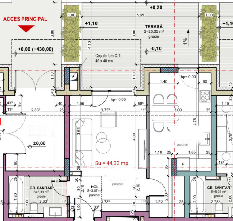 Suprafața utilă 44 m²