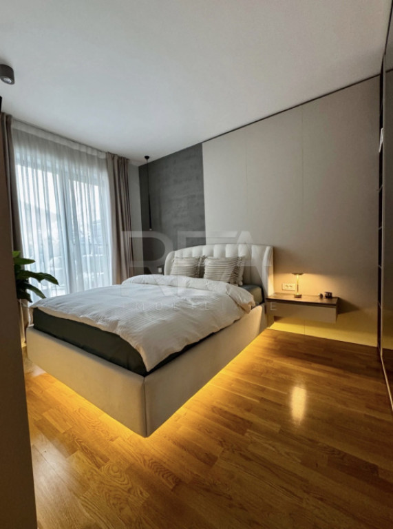 REA Imobiliare - Apartament cu 2 camere situat într-un bloc nou, finalizat în 2023, în zona de nord a Capitalei, în apropiere de Casa Presei, Petrom City, Străulești și vis-a-vis de lacul Băneasa. Proprietatea se află la etajul 1 / 7 și beneficiază de finisaje și dotări moderne, precum încălzire în pardoseală, parchet triplu stratificat, ferestre tripan cu 5 camere și sistem smart home. Suprafață totală 89,58 mp, 51,68 mp utili + terasă 37,90 mp. Se vinde complet mobilat și utilat, cu mobilier realizat la comandă, electrocasnice premium și aer condiționat. Terasa este amenajată, mobilată și dotată cu pergolă retractabilă, sistem de iluminat și acces din trei puncte diferite, două din living și unul din dormitor. Opțional, se poate achiziționa un loc de parcare subteran la prețul de 20.000 euro, precum și o boxă de depozitare la prețul de 5.000 euro. Locul de parcare este vizibil din apartament prin intermediul sistemului smart home. Detaliile tehnice au caracter informativ, fiind preluate de la proprietar. Pentru informații suplimentare și programarea unei vizionări, vă rugăm să ne contactați specificând codul de identificare P9971. Id intern: P9971