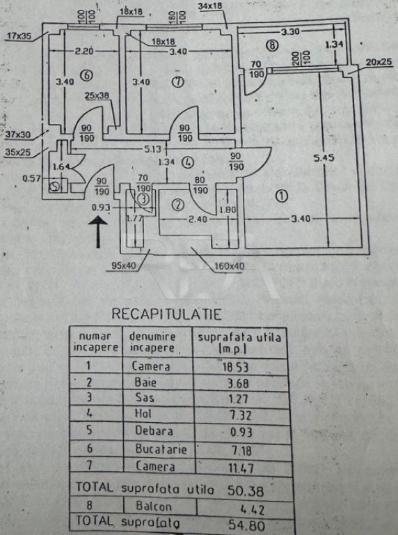 - Suprafață totală de 54,8 mp: 50,38 mp utili+ 4,42 mp balcon.