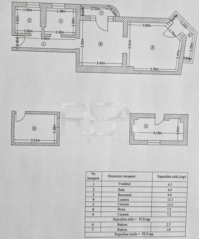 R.E.A. Imobiliare vă oferă spre vânzare un apartament cu 2 camere în zona Vitan Mall / Calea Dudești, semidecomandat, situat într-o vilă reabilitată și bine întreținută. Imobil tip vilă, reabilitat termic și izolat, construit în 1973, care nu este încadrat în nicio categorie de risc seismic, nefiind expertizat. Dispune de demisol, parter, etaj 1, pod și mansardă – curte interioară. Clădirea este locuită de încă două familii, iar apartamentul este unul dintre cele două apartamente cu suprafețele cele mai mari. Se află la etajul 1 al unui imobil tip vilă cu un etaj și are o suprafață utilă totală de 59 mp, din care 4 mp sunt reprezentați de cele două balcoane. Compartimentare: living, dormitor, bucătărie, baie și două balcoane (unul închis – semistradal și celălalt deschis – stradal). Confortul termic este asigurat prin centrală termică proprie. Renovarea apartamentului a fost recent finalizată. Instalațiile electrice și sanitare sunt schimbate. Cămara se află la parter, iar boxa este situată la demisol. Zonă pet-friendly. În imediata apropiere se află puncte comerciale, bancare, farmaceutice, medicale, educaționale și de divertisment. Acces facil la mijloacele de transport în comun. Se acceptă toate modalitățile de plată. Informațiile tehnice au caracter orientativ, acestea fiind preluate de la proprietar. ???? Dacă sunteți în căutarea unui apartament cu 2 camere în zona Vitan Mall – Calea Dudești, nu ratați această ocazie! Comision standard, valabil doar la cumpărare. Pentru mai multe detalii și vizionări, nu ezitați să ne contactați, specificând codul P8879. Id intern: P8879