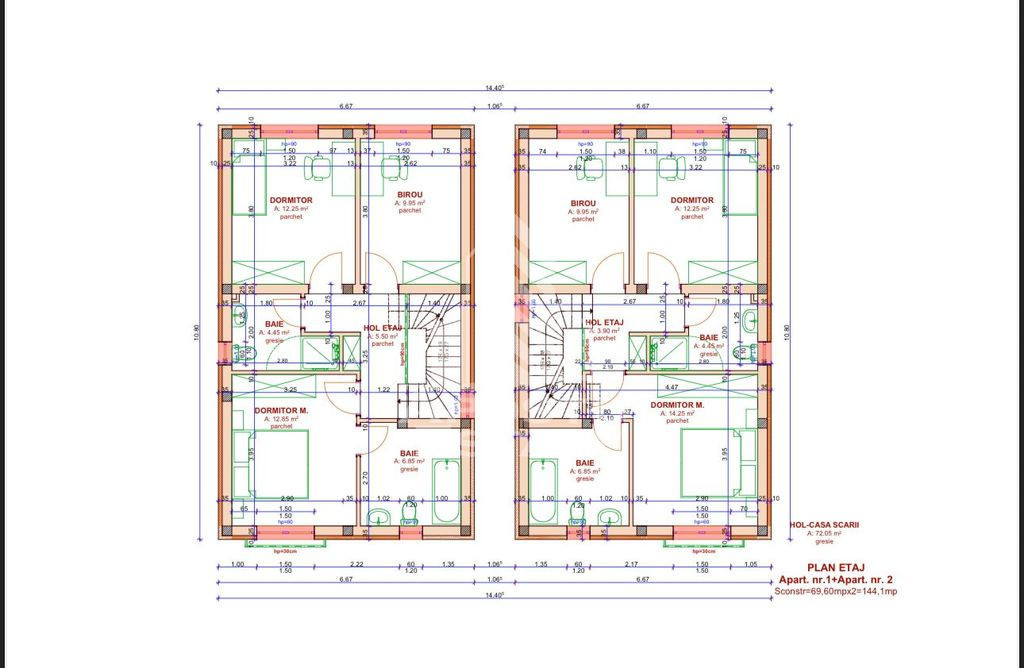 APOSTU ESTATE va propune spre vanzare 2 unitati de duplex, desfasurate pe 2 niveluri P+E si despartite prin camerele tehnice, aflate in Chisoda. O unitate locativa, are o suprafata utila de 132mp, compartimentata astfel: Parter: - 1 camera - 1 living open-space cu bucataria (exista posibilitatea inchiderii bucatariei) - 1 baie cu geam - 1 camera tehnica - 1 spatiu de depozitare - 1 hol de acces Etaj: - 1 dormitor matrimonial cu baie proprie cu geam si dressing - 2 dormitoare - 1 baie cu geam Confortul termic este asigurat prin intermediul centralei termice proprii, prin incalzirea din pardoseala si este sustinut de izolatia exterioara. Amplasarea imobilului, pe o straduta infundata, ofera liniste si intimitate. Constructia este executata de un constructor cu experienta, care pune accent pe nevoile clientului, prin calitatea lucrarii cat si atentia la detalii si va invitam cu drag sa va convingeti singuri de toate aceste aspecte. Nu ezitati sa ne contactati pentru stabilirea unei vizionari sau orice alte detalii suplimentare.