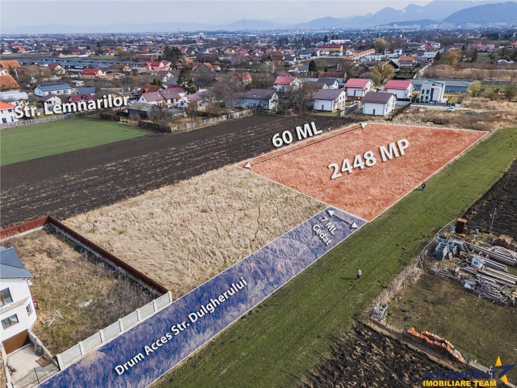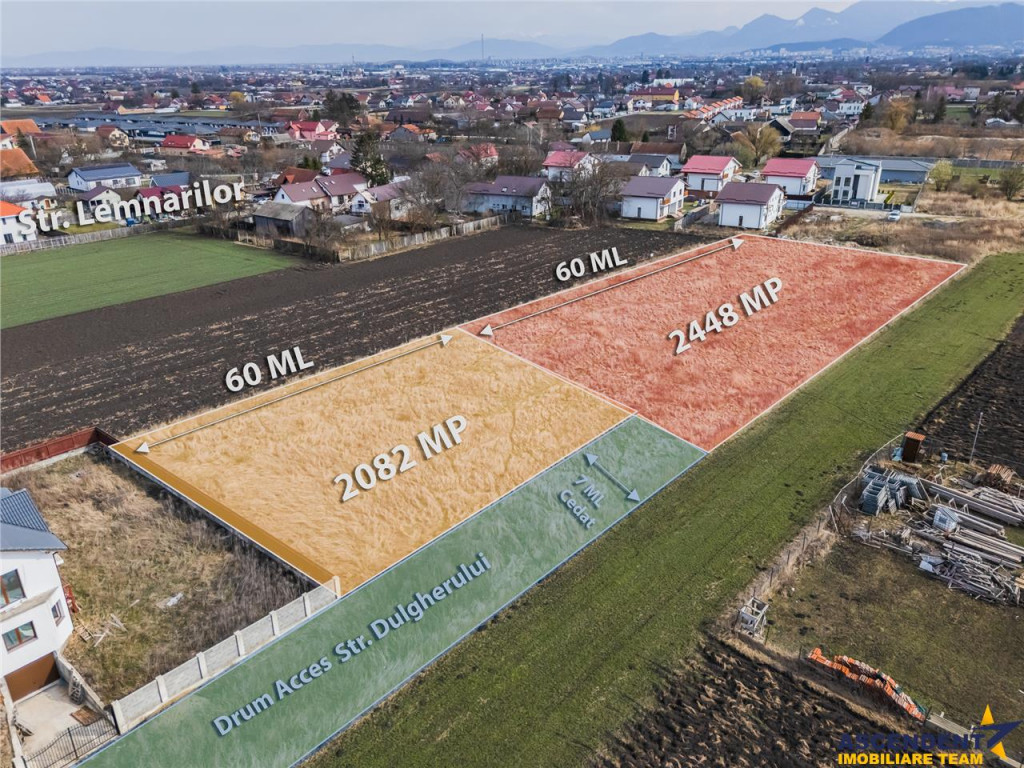 Comision cumparator: 2 % TVA ASCENDENT IMOBILIARE propune spre vanzare in EXCLUSIVITATE un teren intravilan, pretabil pentru constructii case/vile, in cartierul Stupini, pe strada Dulgherului Brasov, Proprietatea se desfasoara pe o suprafata de 2082 metri patrati, cu pozitie avantajoasa avand front stradal de 60 ml, cu potential ideal de dezvoltare imobiliara putand a fii impartit in 4 bc, fiecare parcela beneficiind de front stradal de 15 ml iar ca suprafata de 520 mp. Deasemeni lipit de acest teren avem disponibilitatea pentru inca un lot de teren in suprafata de 2.448 mp care poate fii impartit tot in 4 unitati cu aceleasi caracteristici. Caracteristici teren : CUT 1.00 Regim de inaltime S P 1 M (hmax=8m) Consilier dedicat acestei oferte: domnul Anghel Livius 0767465686 Detalii, fotografii suplimentare si alte oferte similare exclusive: www.ascendentimobiliare.ro