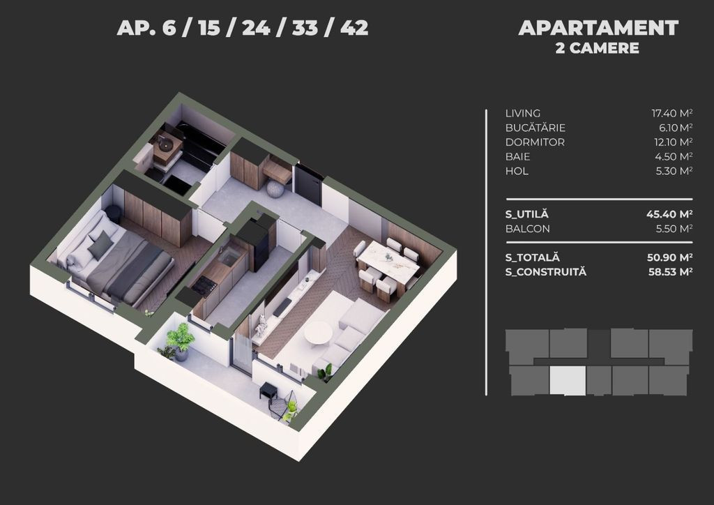 2 camere | 52 m² | Bucuresti-Ilfov / Bucuresti