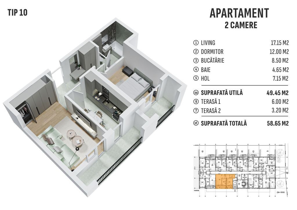 2 camere | 49 m² | Bucuresti-Ilfov / Popesti Leordeni