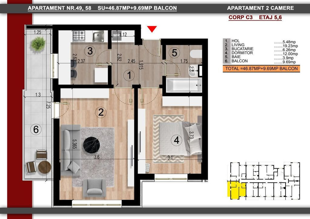 Suprafața utilă 56 m²