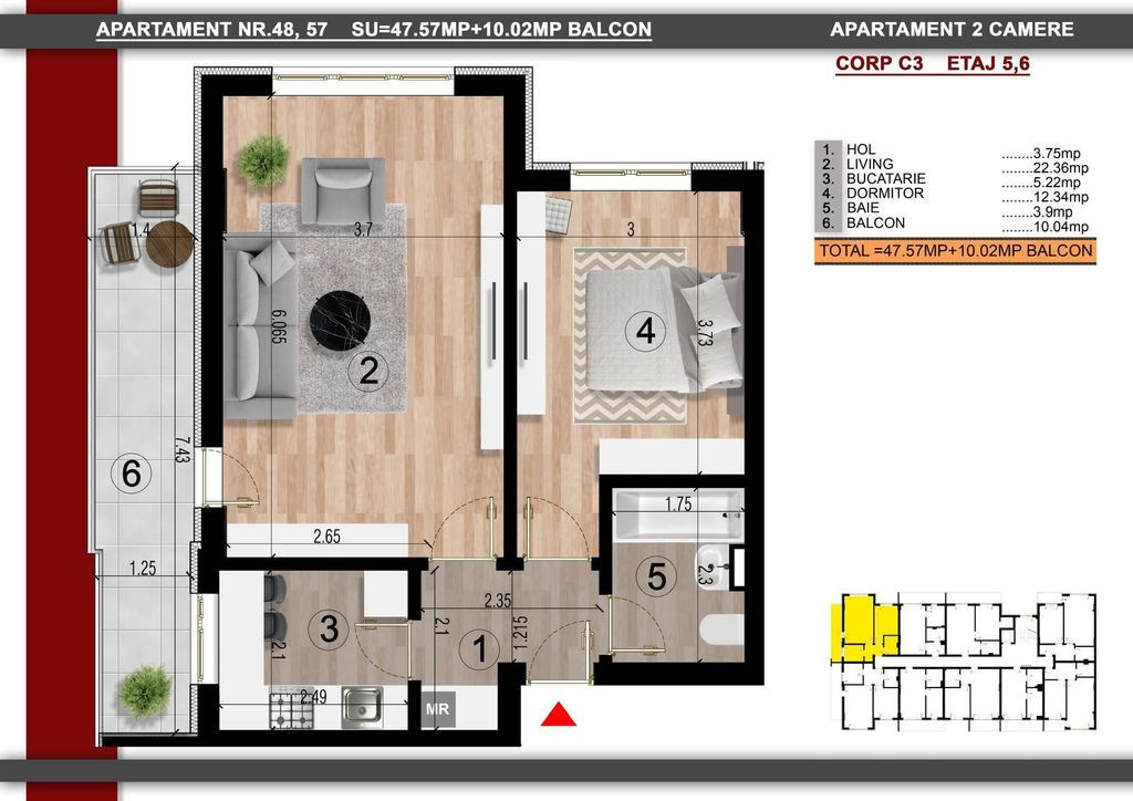 2 camere | 57 m² | Bucuresti-Ilfov / Popesti Leordeni