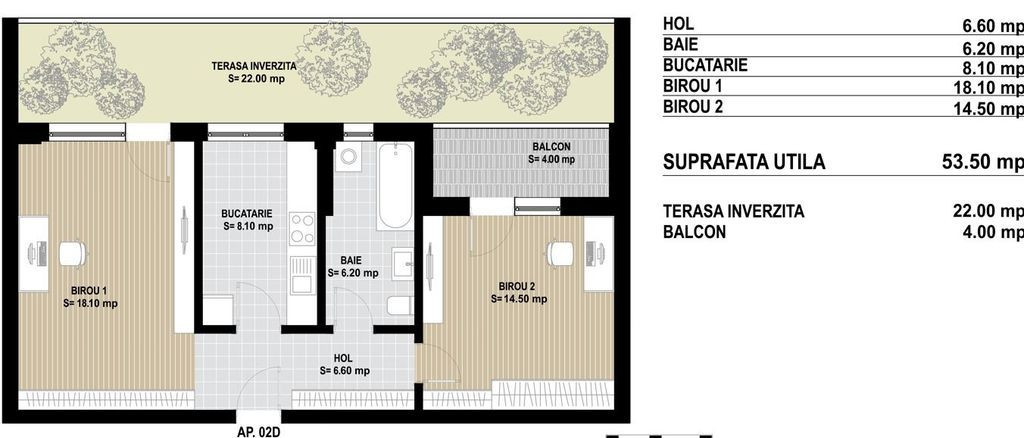 Suprafața utilă 57 m²