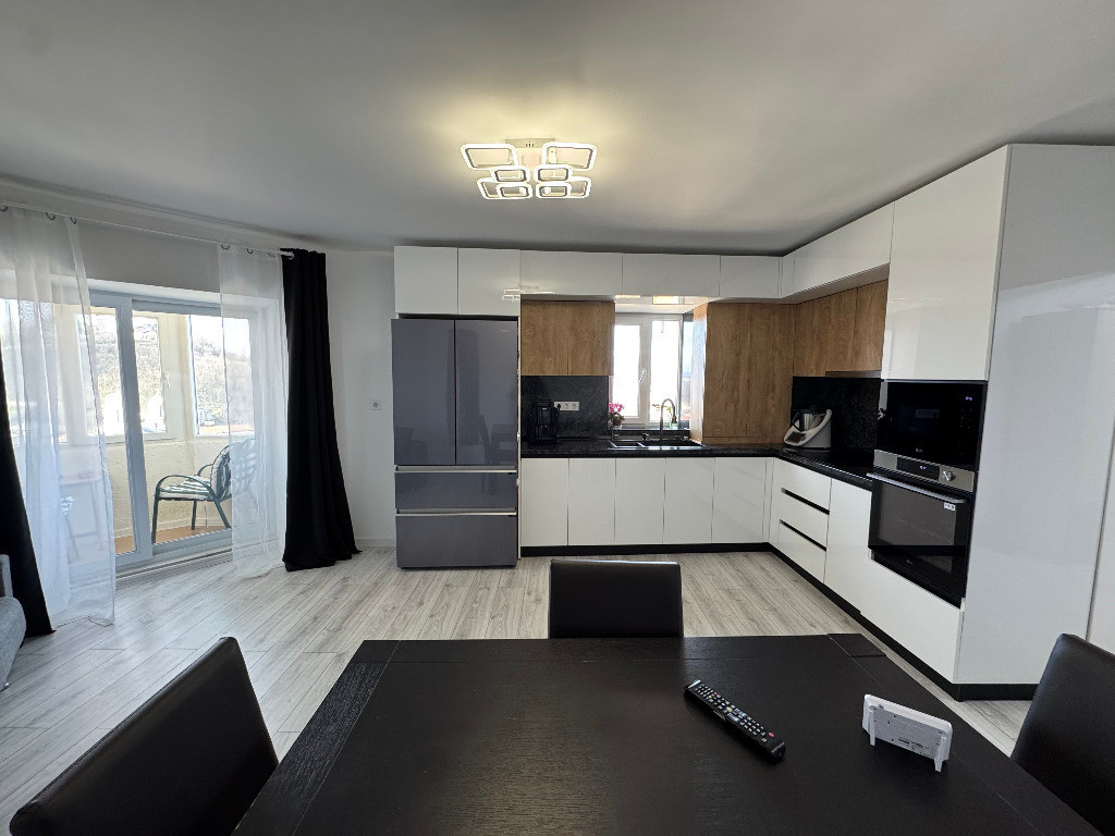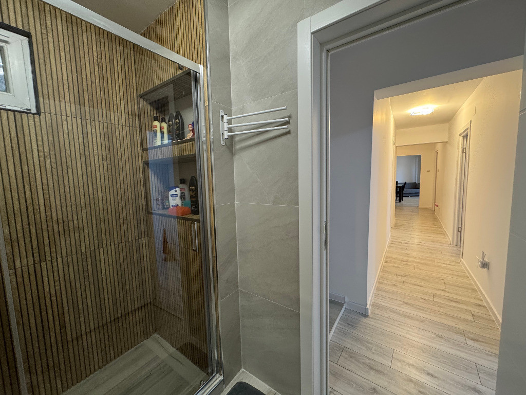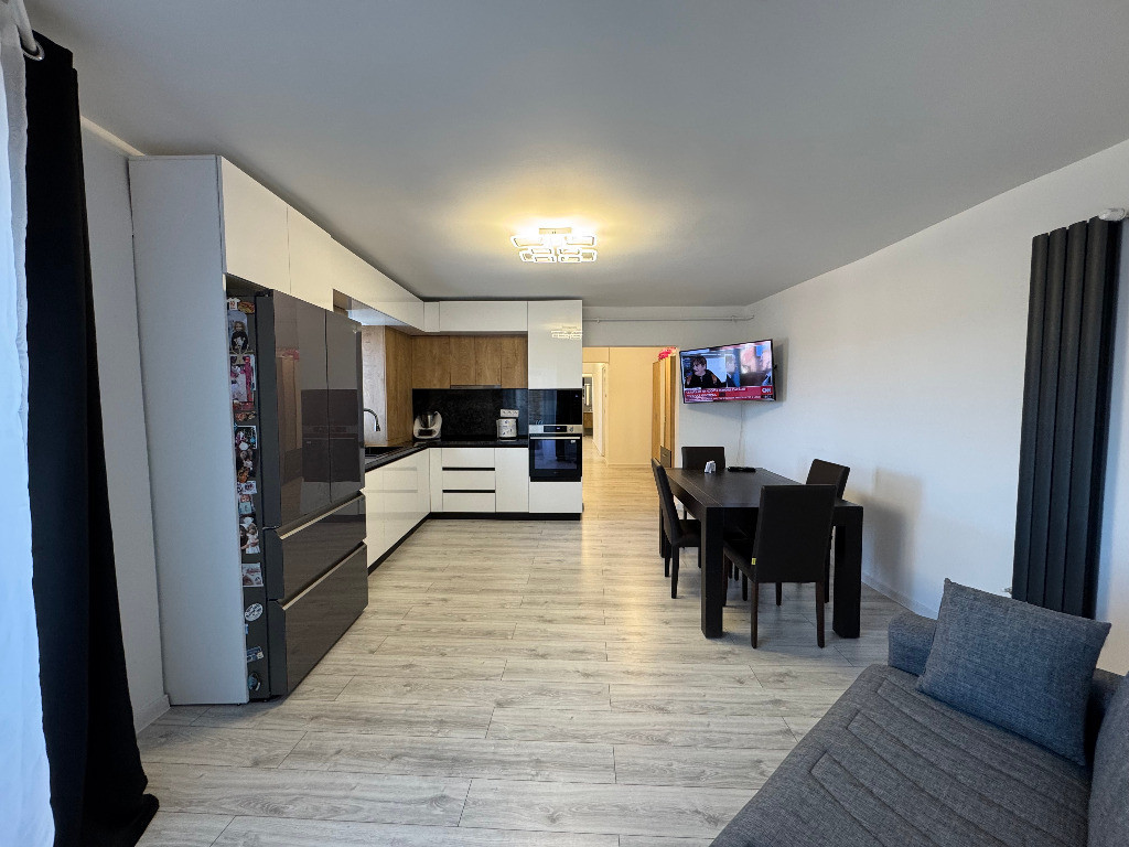 Apartamentul promovat de agentia imobiliara este situat intr-un bloc reabilitat termic, construit in anul 1999, cu structura pe cadre si zidarie de BCA, la etajul 7, bloc care este prevazut cu lift modernizat si acoperis realizat pe intreg blocul, inca de la inceput, aflat in apropiere de Kaufland - N. Titulescu. Este decomandat total si este foarte spatios, avand o suprafata utila totala de 85 mp., in care este inclusa si suprafata celor doua balcoane si are 2 bai. Lucrarile de renovare, mobilare si utilare au fost facute recent, nefacandu-se rabat de la calitatea materialelor folosite si acordandu-se atentie sporita fiecarui detaliu de amenajare. Datorita spatiului foarte generos, apartamentul a putut fi reconfigurat ca utilizare, in sensul ca s-au creat 1 living open space cu bucataria, 3 dormitoare, 2 bai, 2 balcoane si 1 hol, fara a i se aduce modificari structurale. Are orientare Nord-Vest, beneficiind de multa lumina naturala in cea mai mare parte a zilei si nu in ultimul rand de o priveliste extrem de frumoasa. Vanzarea locuintei se face, cu mici exceptii, impreuna cu tot mobilierul si electrocasnicele existente, achizitionate toate din Spania, care au grad de uzura zero.