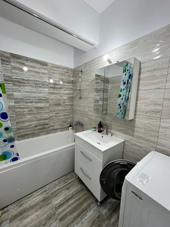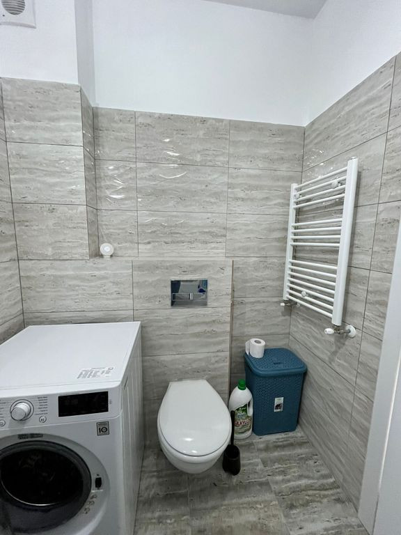 Va propunem spre inchiriere un superb apartament cu 3 camere situat la intersecția Bulevardelor 1 Decembrie 1918 si Liviu Rebreanu, într‐un bloc dat in folosință la sfârșitul anului 2023. Construcția are 13 etaje si este din cadre de beton si compartimentare din cărămidă, cu 2 nivele subterane (inclusiv adăpost antiatomic), apartamentul fiind la etajul 8. Toate utilitățile sunt contorizate individual iar încălzirea se face cu centrala termina proprie, beneficiind de încălzire in pardoseala. Apartamentul beneficiaza de lumina naturala generoasa si poate oferi o vedere placuta catre oras sau catre curtea interioara, în functie de orientare. Ca si compartimentare si amenajare, acestea sunt ideale si anume: - living generos de 21.6 mp, cu canapea extensibila si mobilier de living plus un smart tv - dormitor matrimonial, cu suprafață de 14mp, având pat tapițat de 1.8 m lățime, cu saltea Fluffy, noptiere și șifonier, smart tv - dormitor secundar de 12 mp, cu pat tapițat de 1.6m lățime, noptiere, comoda si birou - hol spațios de 14 mp, cu un dressing generos, cu aparat de aer condiționat de 21.000 BTU, dispus astfel încât sa asigure o răcire eficienta a întregului apartament - bucatarie inchisa, cu suprafață de 9 mp, mobilata si utilata complet, inclusiv mașina de spălat vase, cu acces in balconul închis de 5mp, unde s-a mutat zona de gătit, pentru a maximiza confortul - doua bai, una cu cada iar cealaltă cu cabina de dus, ambele bai cu rezervoare WC încastrate Suprafata utila este de 77mp, cu un balcon închis de 5 mp plus o terasa spațioasă de 33 mp, însumând 115 mp, perfect pentru serile linistite in familie, departe de grijile cotidiene, dar si pentru conceptul de Work from Home prea bine intalnit in aceasta perioada. Apartamentul este nou, cu mobilier făcut la comanda si dispune de 1 loc de parcare cu acces facil. Daca nu aveți mașina, sunteți la doar 12 minute de metrou Titan, 15 minute de metrou 1 Decembrie, cu stație STB chiar in fata blocului. Complexul este dotat cu bariera de acces, cu acces telefonic. Acest „acasă” te așteaptă cu o chirie de 850 euro/lună. La început, se achită luna în curs și două luni de garanție – o bază de încredere care îți oferă siguranță și liniște, pentru ca tu să te poți bucura pe deplin de noul tău cămin. Pentru mai multe detalii si vizionari va stau la dispozitie!