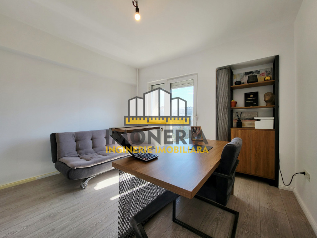 Cauti un apartament cu 3 camere, gata de mutat, amenajat modern, mobilat si utilat, cu priveliste deosebita, luminos, cu multiple zone de depozitare, pozitionat langa un parc, bine conectat la mijloacele de transport in comun si orice alt punct de interes cotidian? A da, si cu Comision 0% Chirias? :) Ce-ai spune daca, "la pachet" primesti si internet de mare viteza Orange, pachet 2 Gb, cu toate serviciile de streaming incluse? Apartamentul decomandat, cu 3 camere din galeria foto poate fi solutia cautarilor tale. Acesta se afla la etajul 8 al unui imobil cu regim de inaltime S+P+10 ( an 1983), pozitionat pe Calea Crangasi, in buza Parcului 9 Mai. Este luminos, orientat pe Sud, dotat cu ferestre termoizolante tripan si rulouri exterioare, pentru a a avea o atmosfera interioara placuta, indiferent de anotimp. Amplasarea asigura acces facil, practicabil pe jos catre: - metrou Crangasi: 700 m - metrou Grozavesti: 1.5 km - Parc 9 Mai: langa bloc - alte parcuri: Crangasi , Clubul Sportiv Sportul Studentesc de la 600 m - Universitatea Politehnica Bucuresti: 2 km - magazine rapide si supermarket-uri: incepand cu parterul blocului - hypermarket-uri Carrefour Grozavesti/Kaufland Basarab: de la 1.3 km - Piata Crangasi: 800 m - Sala Fitness: de la 400 m - terase, cafenele, restaurante: de la 300 m Daca ai rasfoit galeria foto, vei fi realizat ca nivelul de finisare, amenajare si dotari, este unul aparte, foarte rar intalnit pe piata inchirierilor. Totul este nou, intr-o stare excelenta. Daca esti genul de persoana care apreciaza si intretine in timp acest nivel de predare, atunci poti fi chiar tu bucurosul chirias al acestui apartament deosebit. Cei aprox 70 mpu + 3 mp balcon, sunt distribuiti decomandat. Accesul se face printr-un hol de decomandare, prevazut cu multiple zone de depozitare pe toata lungimea sa, pentru a asigura si cele mai pretentioase nevoi in acest sens. In capetele acestuia sunt prevazute Grupul sanitar si Baia, dotata cu dus tip "walk in". Zona de zi este deschisa, compusa din Living, Dining si Bucatarie dotata complet, inclusiv vesela si tacamuri. In Living a fost inglobat si unul dintre cele doua balcoane originale, iar in locul acestuia a fost amenajata o zona numai buna pentru prima cafe a zilei, cu o priveliste spectaculoasa. Aceeasi priveliste se pastreaza indiferent de camera. Cel de-al doilea Balcon ( deschis de data aceasta), se poate accesa atat din Dormitorul Matrimonial cat si din Birou ( al doilea Dormitor). Este genul de apartament ideal pentru un cuplu tanar, care are prefera acces instant catre...practic orice. :) Iar daca se lucreaza de acasa, Biroul si Living-ul sunt separate de Dormitorul Matrimonial, astfel incat fiecare se poate focusa in liniste pe sedinte/call-uri etc. fara sa se deranjeze reciproc. Bonus! Internetul este gratis! Exact. Daca te decizi asupra acestui apartament, beneficiezi de internet de mare viteza de la Orange, pachet 2 Gb, cu toate serviciile de streaming incluse. ;) Predarea apartamentului se face exact ca in poze, cu toate electrocasnicele incluse: - TV Living+Dormitor Matrimonial - cuptor, plita, hota - frigider - cuptor microunde - masina splat rufe - aparate aer conditionat - boiler electric Baie mare Daca cerintele tale se regasesc in cele descrise mai sus, te invitam cu drag la o vizionare placuta! :) Note: Conditii inchiriere: 1 luna chirie + 1 luna garantie Apartamentul se preda ca in poze. Nu se accepta animale de companie. Comision: 0% Chirias. Id intern: P151362
