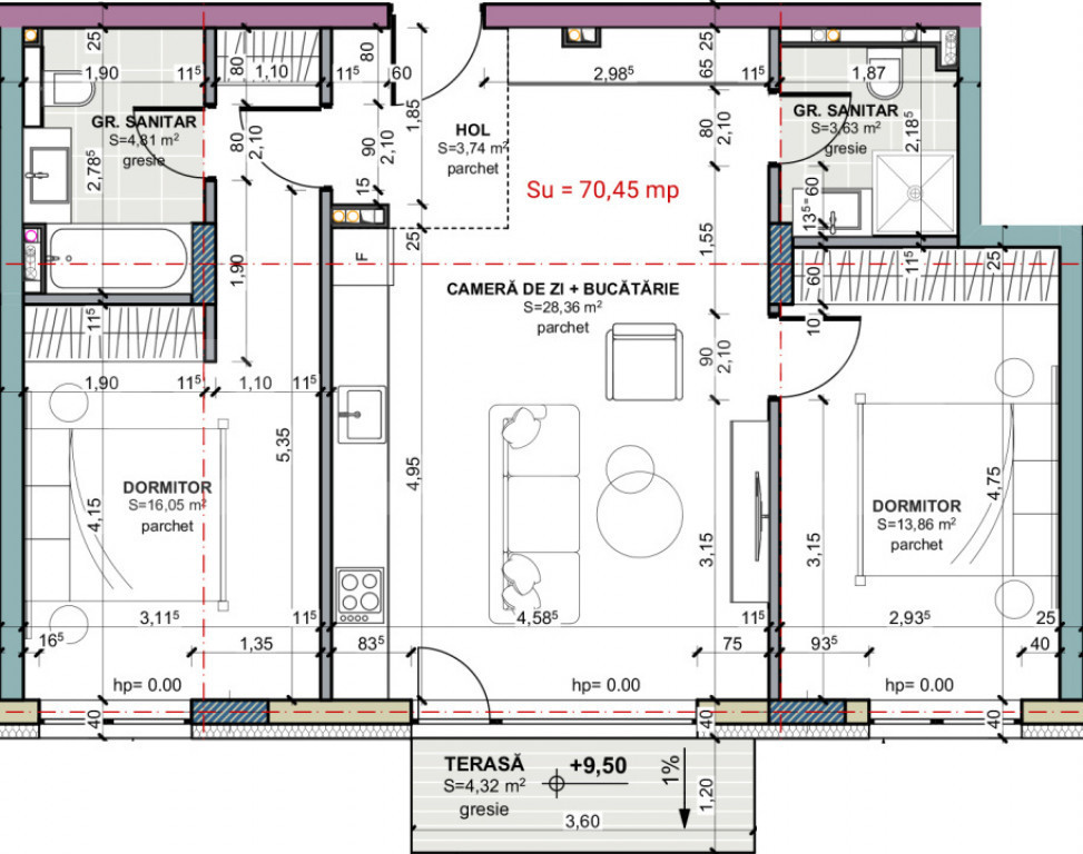 Propunem spre vanzare un apartament cu 3 camere în Terra Gardens, Cluj-Napoca Locuințe moderne într-un ansamblu exclusivist cu acces privat, compus din case și blocuri cu regim redus de înălțime – o alegere ideală pentru familii sau investiție sigură. Parcări subterane disponibile (10.000 € TVA INCLUS) Plata în tranșe, corelată cu stadiul lucrărilor sau plata prin credit ipotecar, avans minim 50% Termen de finalizare: august 2026 Comision 0% Exemplu disponibil – Etaj 3: • Suprafață utilă 70,45 mp • 2 dormitoare, 2 băi • Living generos + bucatarie • 2 balcoane • Predare la stadiul de semifinisat – 2 mâini de glet, șapă, instalații trase pe poziții • Încălzire în pardoseală • Centrală termică smart pe bloc Cod ofertă / ID BLITZ: P156640 Id intern: P156640