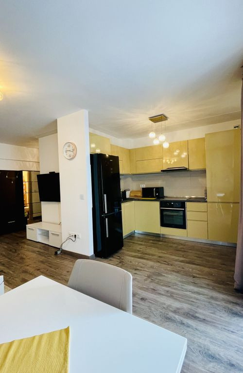 Bucataria este open space cu livingul, dotata cu cuptor electric, plita cu inductie, masina de spalat rufe cu uscator, espresor, cuptor cu microunde, toaster, frigider, masina de spalat vase, hota si toata vesela necesara prepararii meselor.