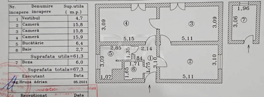 3 camere 61,3 mp utili zona Floreasca