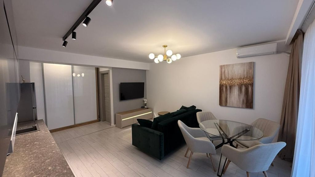 Va prezentam spre inchiriere un apartament modern cu 3 camere situat in complexul rezidential Ambiance Residence, intr-o zona linistita si bine conectata din Pipera – Aviatiei. Apartamentul beneficiaza de loc de parcare in parcarea subterana inclus in pret. Locuinta este amplasata la etajul 2 si are o suprafata utila totala de 85 mp, cu un balcon generos de aproximativ 10 mp - ideal pentru momentele de relaxare. Compartimentarea este practica si bine gandita: living spatios cu bucatarie open space, doua dormitoare si doua bai moderne. Apartamentul se inchiriaza complet mobilat si utilat, cu finisaje de calitate si design contemporan, fiind pregatit pentru mutare imediata. Locuinta este dotata cu masina de spalat vase Bosch, cuptor electric Electrolux, 3 televizoare Samsung, masina de spalat rufe smart, videointerfon. Incalzirea este realizata prin pardoseala, cu centrala termica individuala, sistem de monitorizare si control de la distanta, precum si termostate pentru fiecare zona, oferind un confort ridicat si eficienta energetica. Climatizarea este asigurata in toate camerele prin sisteme Mitsubishi Electric. In imediata apropiere se afla hipermarketurile Kaufland si Lidl, la doar 5 minute de mers pe jos. Ansamblul residential dispune de acces controlat si supraveghere video - ceea ce creste siguranta locatarilor si a proprietatii. Conectivitate si acces rapid: statie STB chiar in fata complexului si conexiuni spre metrou Aurel Vlaicu. DN1 si acces facil catre nordul orasului si aeroport. Zona ofera acces usor la parcuri si spatii verzi - Lacul Floreasca sau Parcul Herastrau la cateva minute distanta. In proximitate se regasesc restaurante, cafenele, centre comerciale si numeroase facilitati urbane.