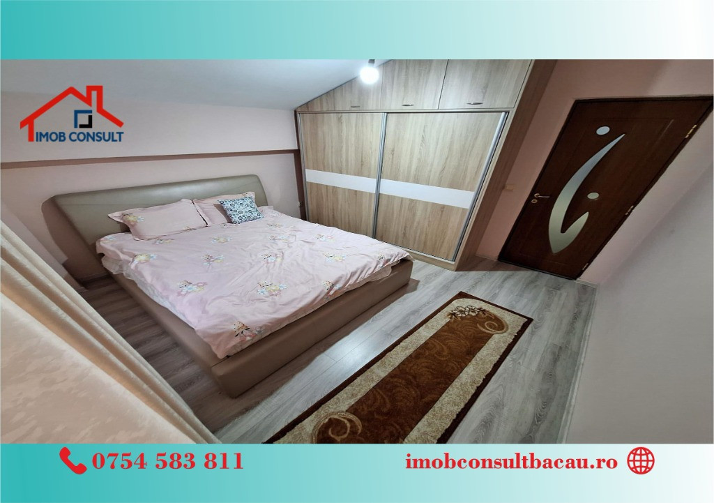 Imob Consult Bacau va prezinta spre achizitionare un apartament deosebit cu 3 camere, situat la etajul al treilea al unui bloc cochet cu doar trei niveluri și șarpantă, finalizat în anul 2017, amplasat in cartierul Narcisa. Clădirea, modernă și atent întreținută, este izolată exterior, ceea ce contribuie la un confort termic excelent și la eficiență energetică sporită. Apartamentul se remarcă printr-o compartimentare decomandată și prin spațiile generoase, luminoase și primitoare. Cele două balcoane oferă un plus de respiro și potențial, fie pentru relaxare la aer curat, fie pentru activități cotidiene. Locuința este îngrijită cu mare atenție, prezentându-se impecabil și oferind noului proprietar posibilitatea de a se muta fără investiții majore. Confortul este completat de centrala termică proprie, care permite controlul eficient al temperaturii în orice anotimp, precum și de instalația de aer condiționat, ideală pentru zilele călduroase de vară. Atmosfera generală a apartamentului este una caldă, modernă și armonioasă, perfectă pentru o familie sau pentru cei care își doresc un cămin spațios într-o zonă în continuă dezvoltare. Localizarea reprezintă unul dintre avantajele majore: în apropiere se află școli, grădinițe, precum și aeroportul, ceea ce face ca orice deplasare să fie rapidă și comodă. Cartierul este apreciat pentru accesibilitate, liniște și comunitate. Toate aceste beneficii se reunesc într-o ofertă atractivă, pentru calitatea locuinței și pentru poziționarea sa excelentă. Daca consideri ca aceasta proprietate ti se potriveste, nu ezita sa ne contactezi la nr. de tel: - Cosmin: 0754.583.811; - Corina: 0740.288.297, sau la sediul agenției noastre, Imob Consult Bacau, situat pe strada Banca Națională nr. 27 la intersecția cu Str. Neagoe Vodă, langa Irish Pub.